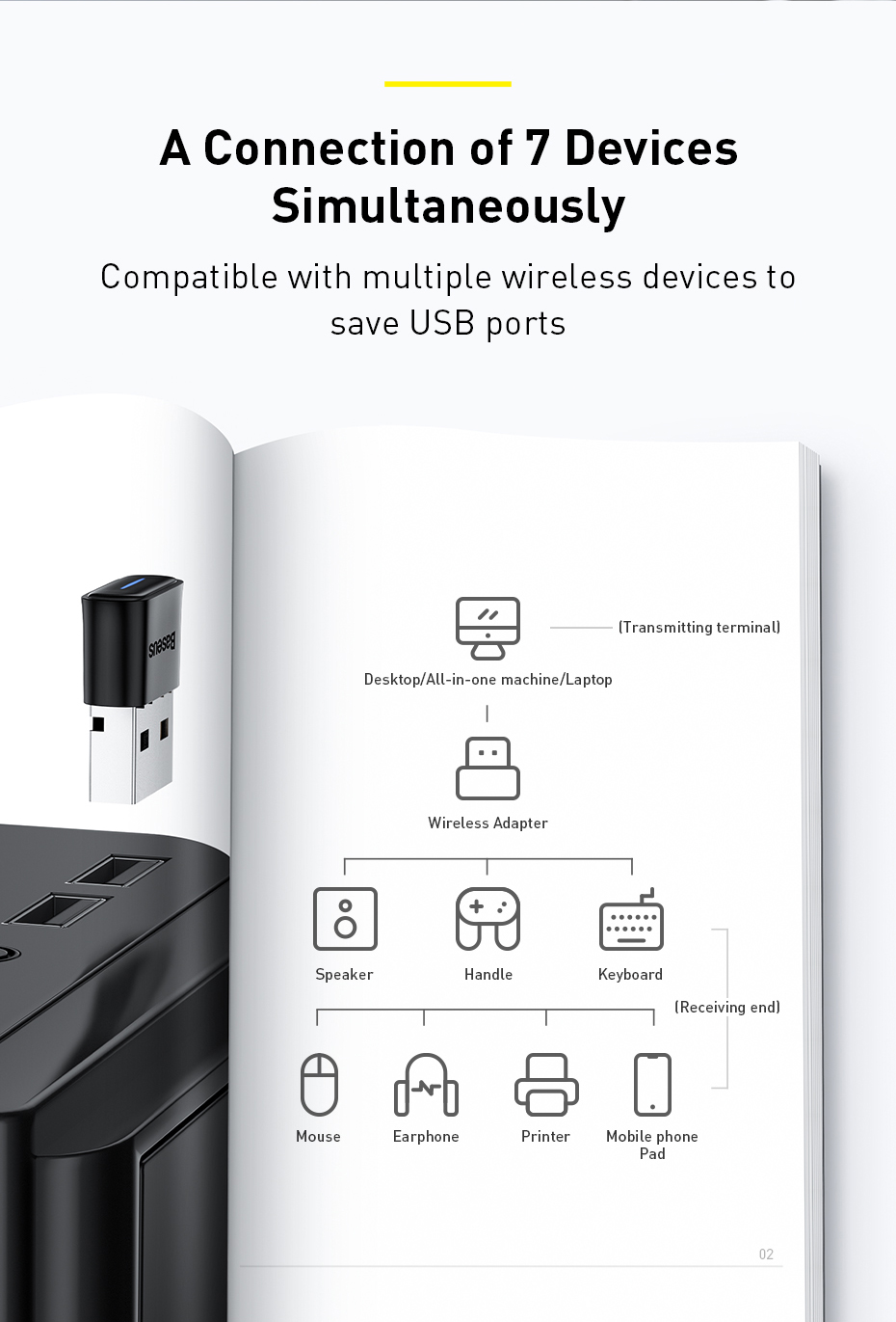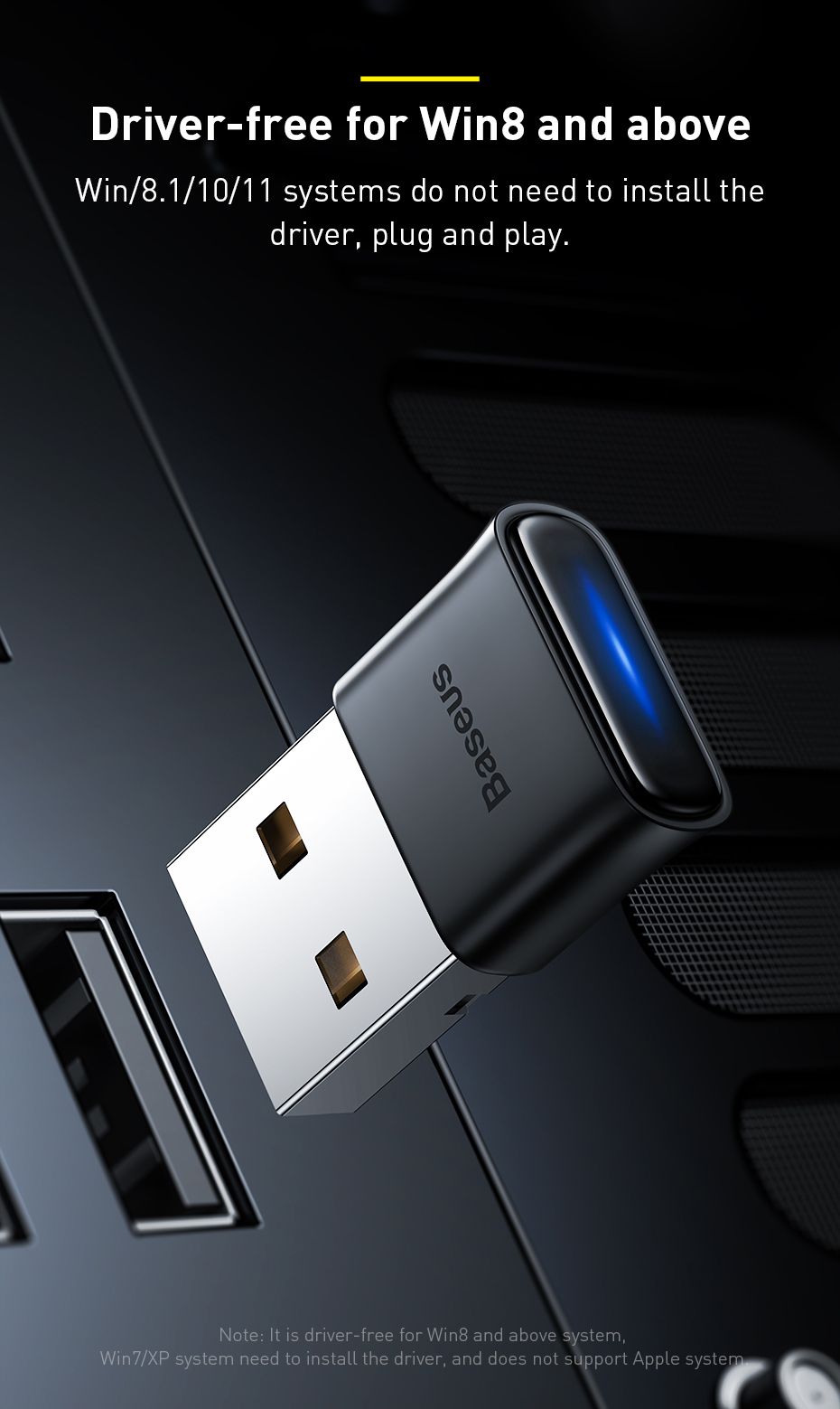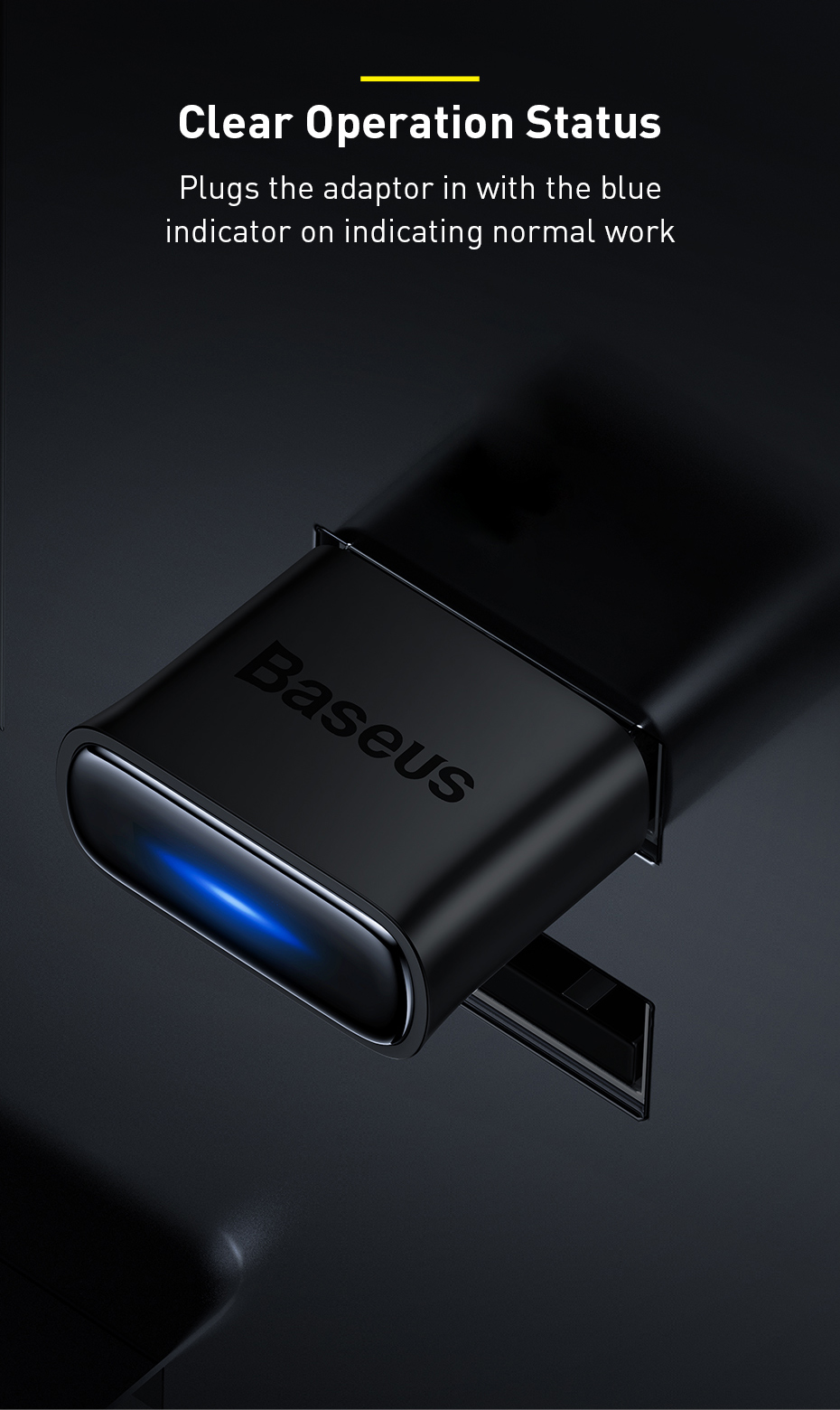 Baseus BA04 là bộ chuyển đổi Bluetooth mini dạng USB giúp thêm tính năng Bluetooth cho các thiết bị như laptop, PC không hỗ trợ sẵn, đồng thời hỗ trợ truyền âm thanh không dây mượt mà đến tai nghe, loa Bluetooth và các thiết bị ngoại vi. Với công nghệ CSR 5.0 tiên tiến và phạm vi kết nối lên đến 20 mét, sản phẩm mang đến trải nghiệm kết nối nhanh, ổn định và tiện lợi.