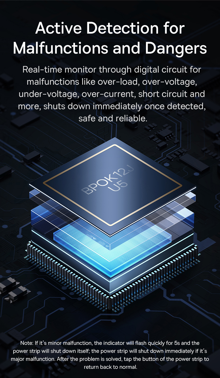 Theo dõi thời gian thực thông qua mạch kỹ thuật số cho các sự cố như quá tải, quá áp, kém điện áp, đoản mạch và hơn thế nửa nó có thể chủ động phát hiện sự cố và ngắt điện bảo vệ người dùng.