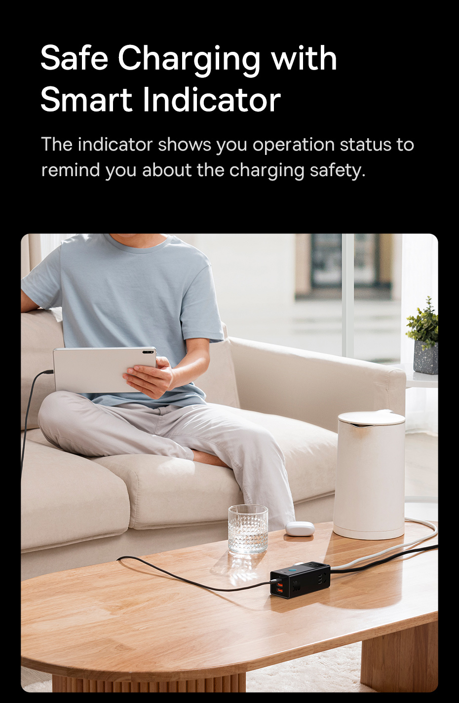 Đèn bảo hiện thị trạng thái hoạt động, nhắc nhở cho bạn về sự an toàn khi sạc