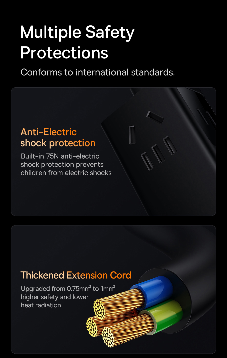 Dây nối dầy 1mm² cho độ an toàn cao với bực xạ thấp. Ngoài ra dây dẫn uốn cong cực kỳ tốt thích hợp decor bàn làm việc theo ý muốn giúp tối ưu diện tích cho bạn