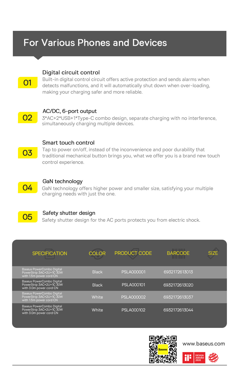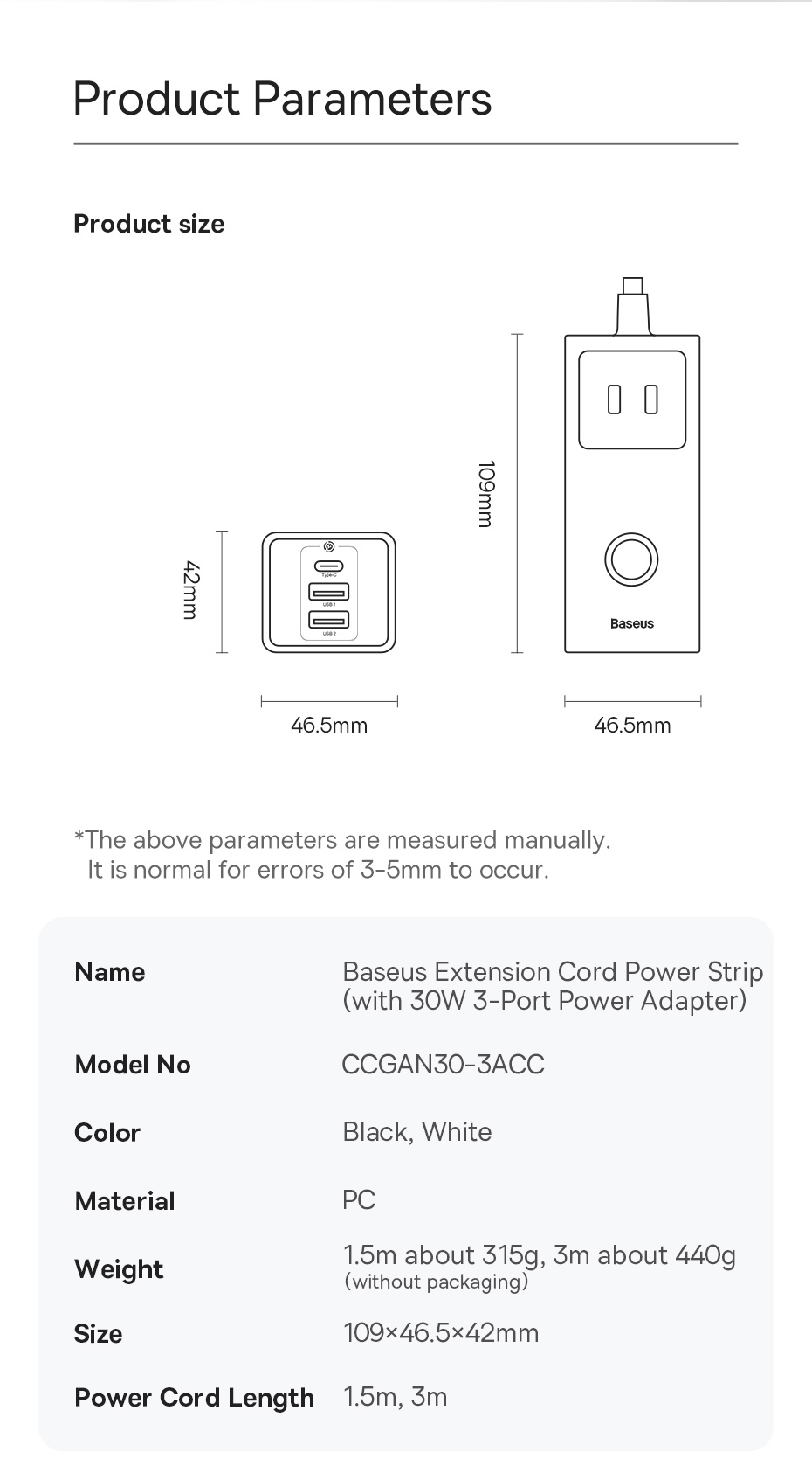 | Tên | Baseus PowerCombo Digital PowerStrip 3AC+2U+1C 30W |