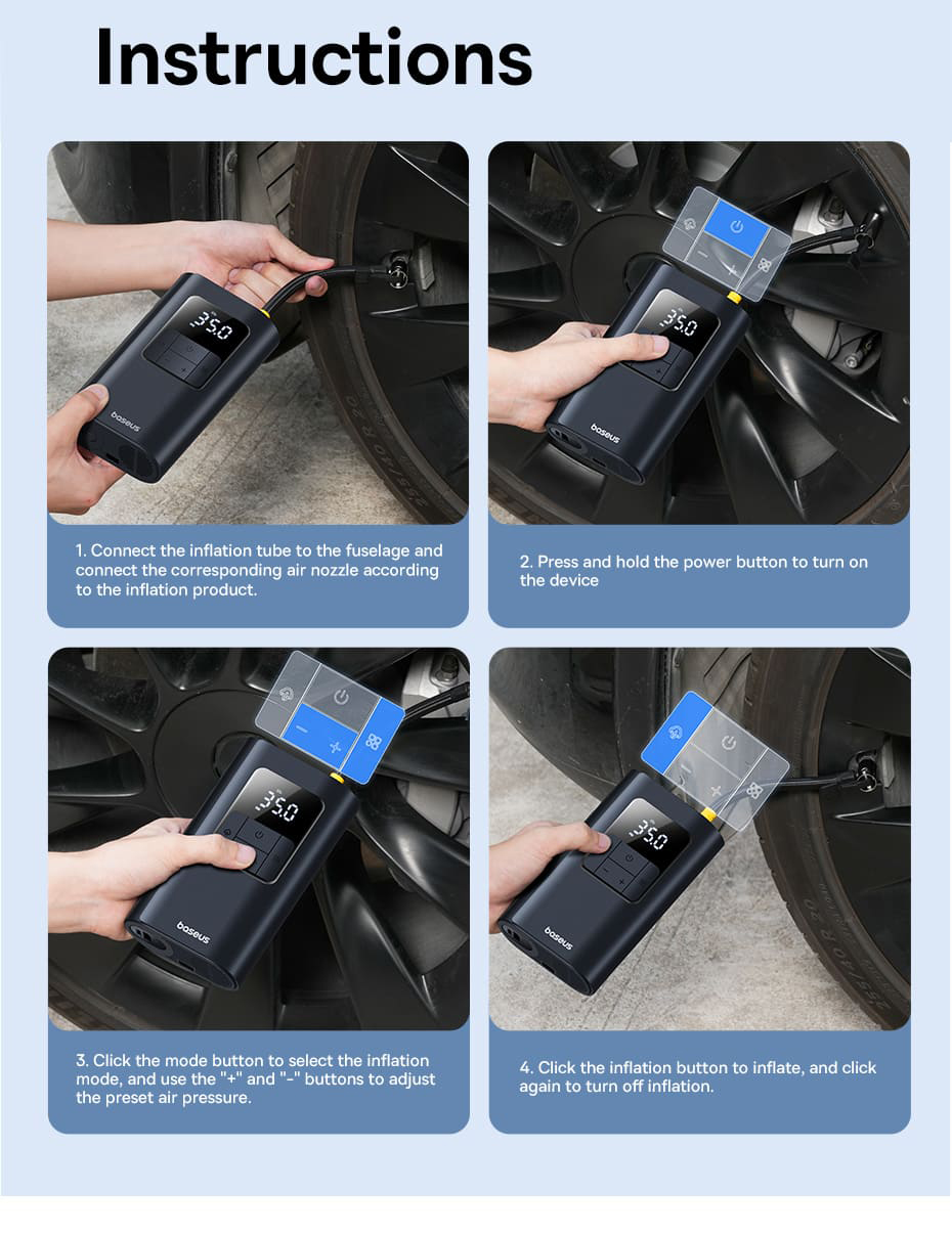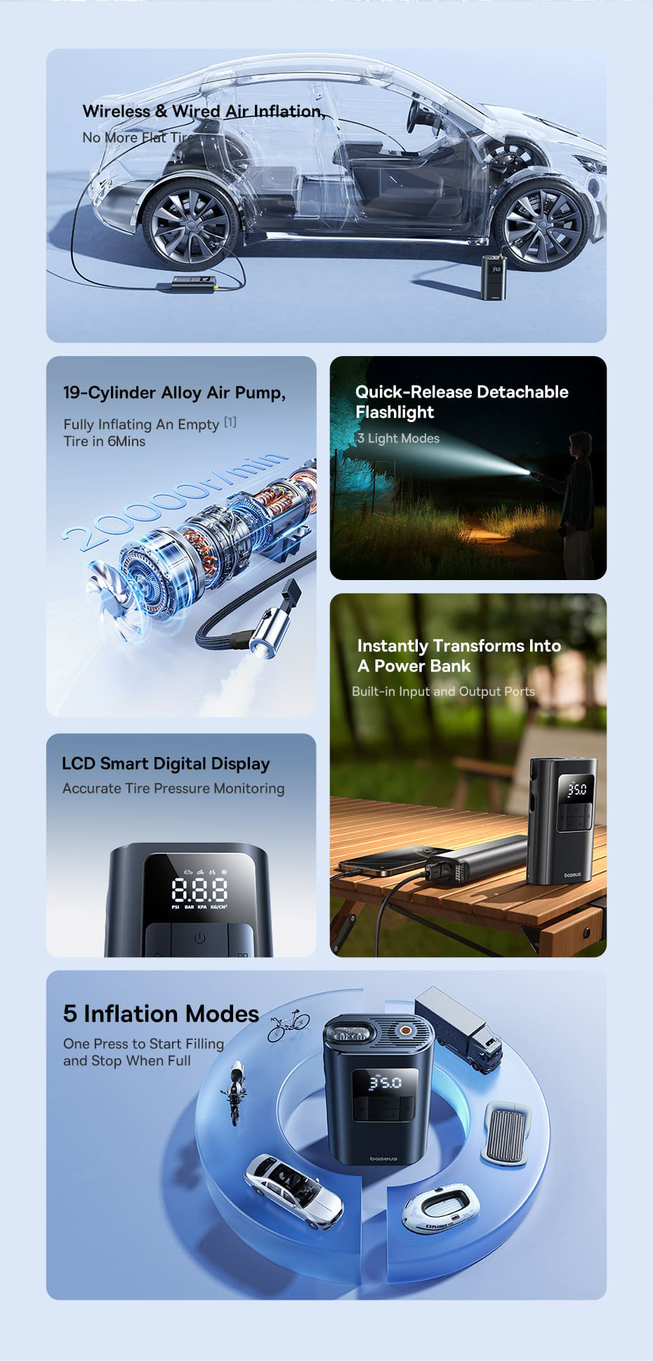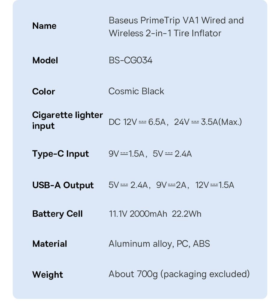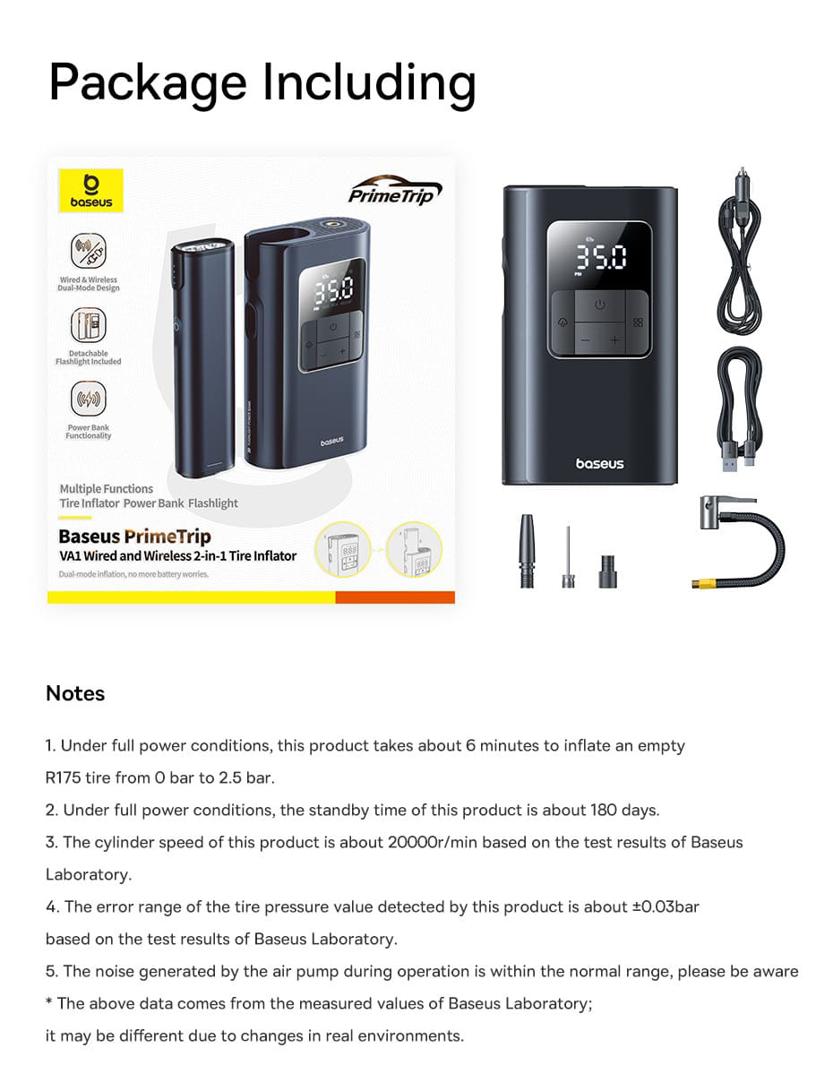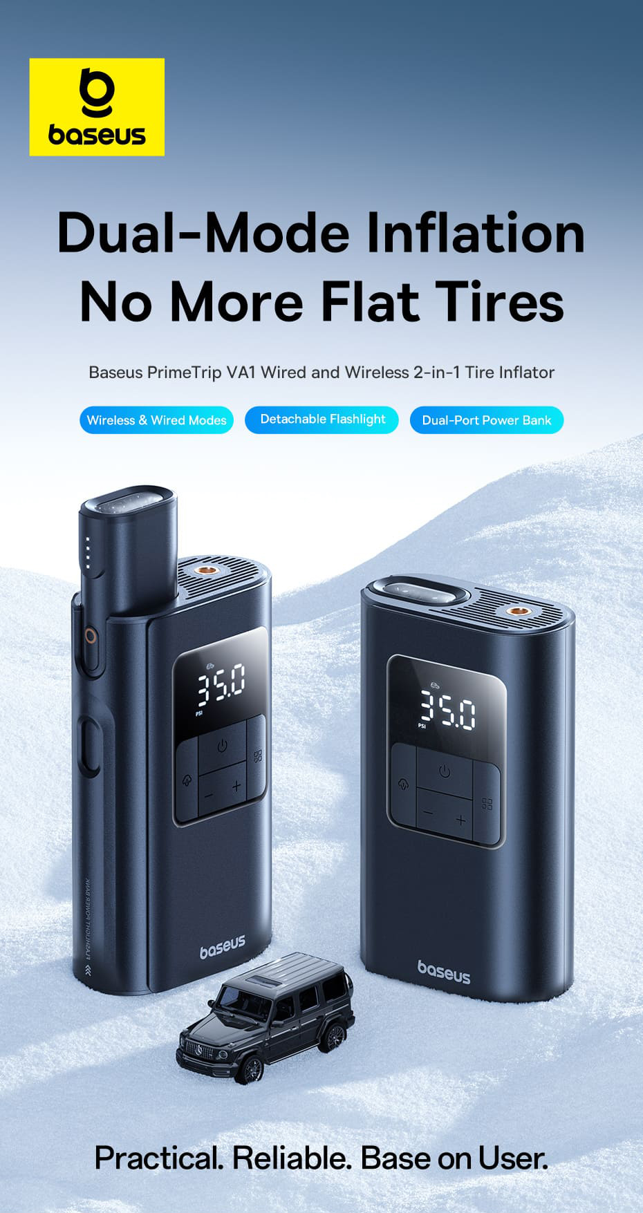 | Tên | Bơm Lốp Kiêm Sạc Dự Phòng Mini Baseus PrimeTrip VA1 Wired and Wireless 2-in-1 Tire Inflator |