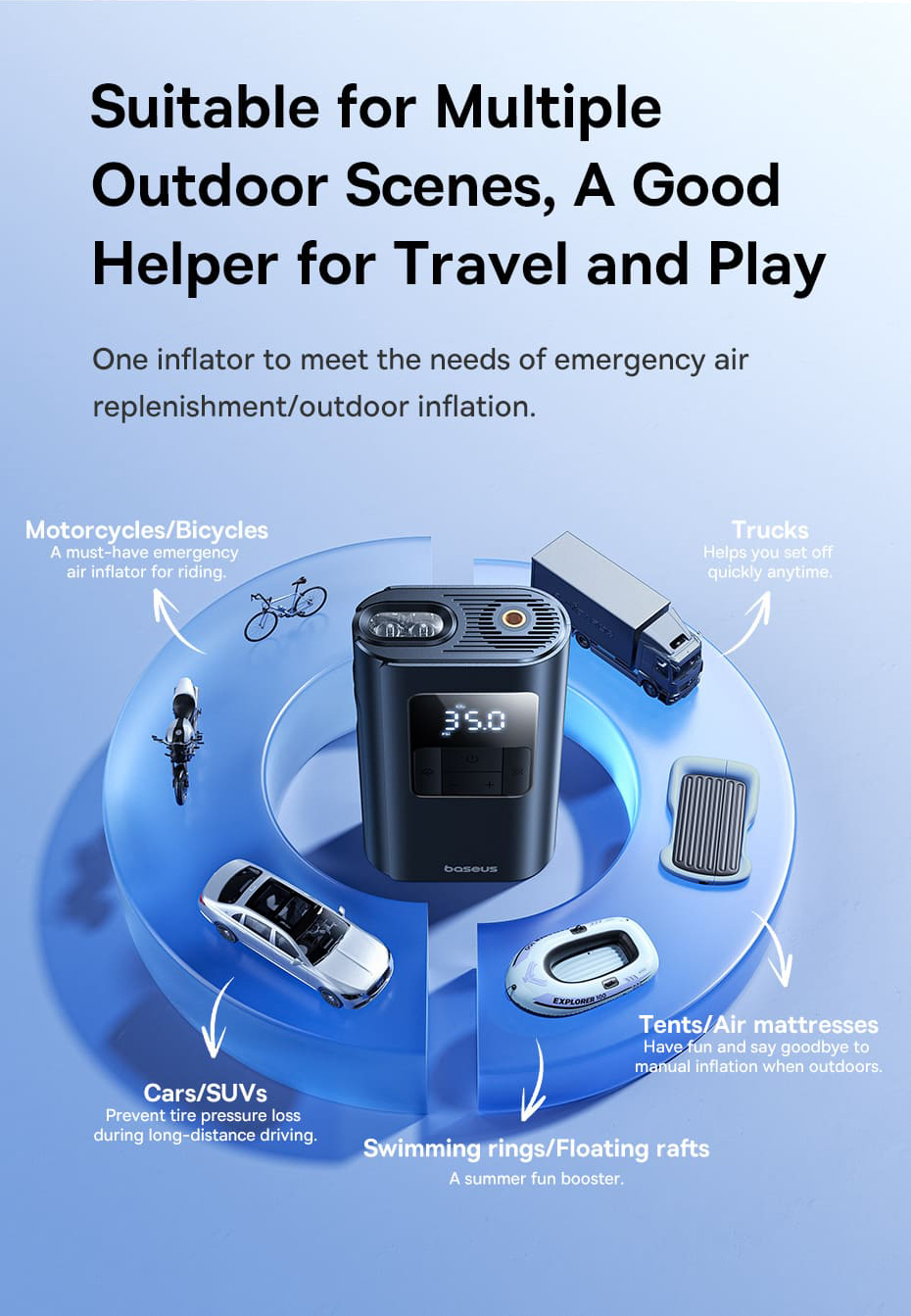Đừng để sự cố lốp xe làm gián đoạn chuyến đi của bạn! Bơm lốp mini Baseus PrimeTrip VA1 là thiết bị cứu hộ đa năng "tất cả trong một" mà mọi tài xế nên có. Với khả năng bơm thông minh, hệ thống nguồn kép và chức năng sạc dự phòng, đây là người bạn đồng hành đáng tin cậy trên mọi nẻo đường.
