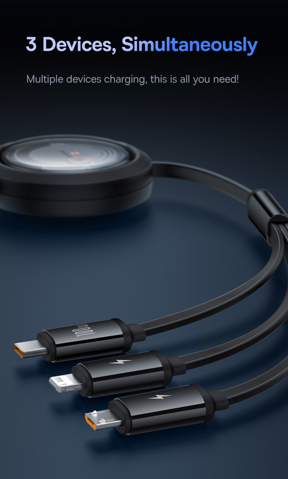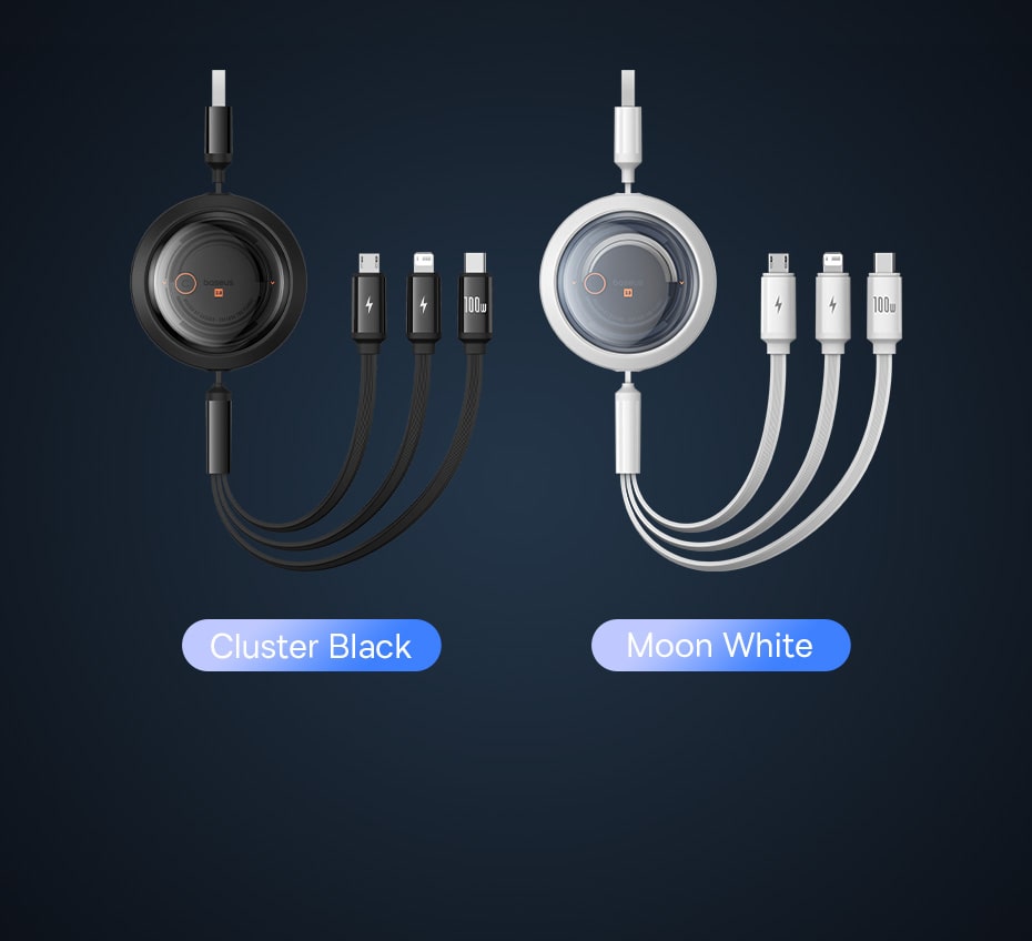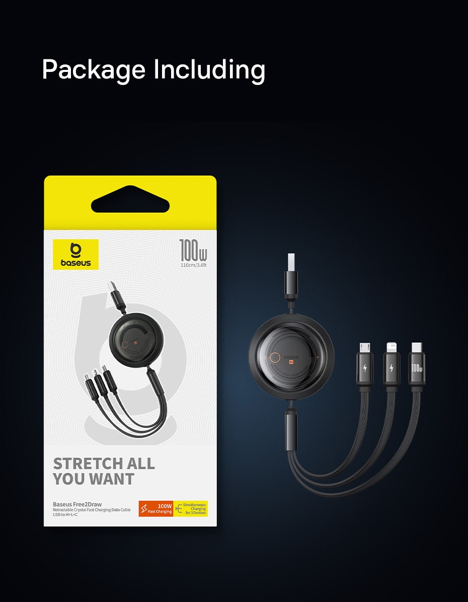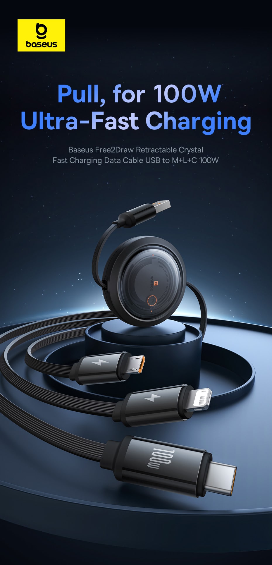 | Tên | Cáp Sạc Đa Năng Baseus Free2Draw Retractable Crystal Fast Charging Data Cable USB to M+L+C 100W |