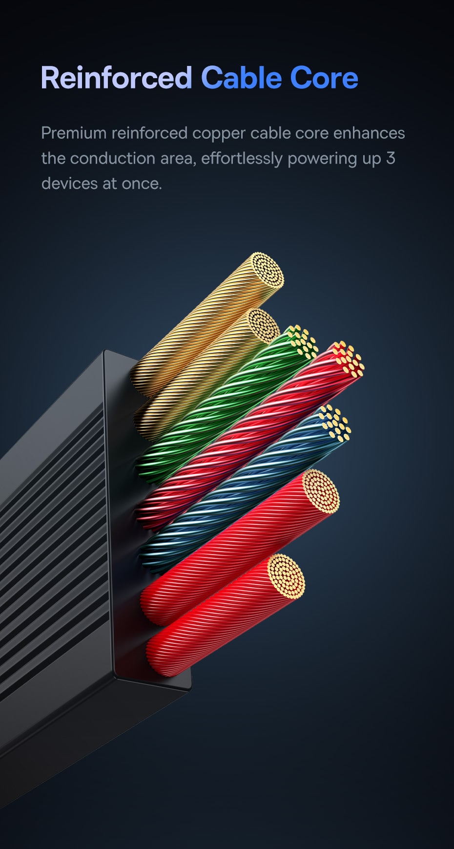 ○ Thiết kế: Dây rút 3 trong 1, tự động thu gọn, chống rối.