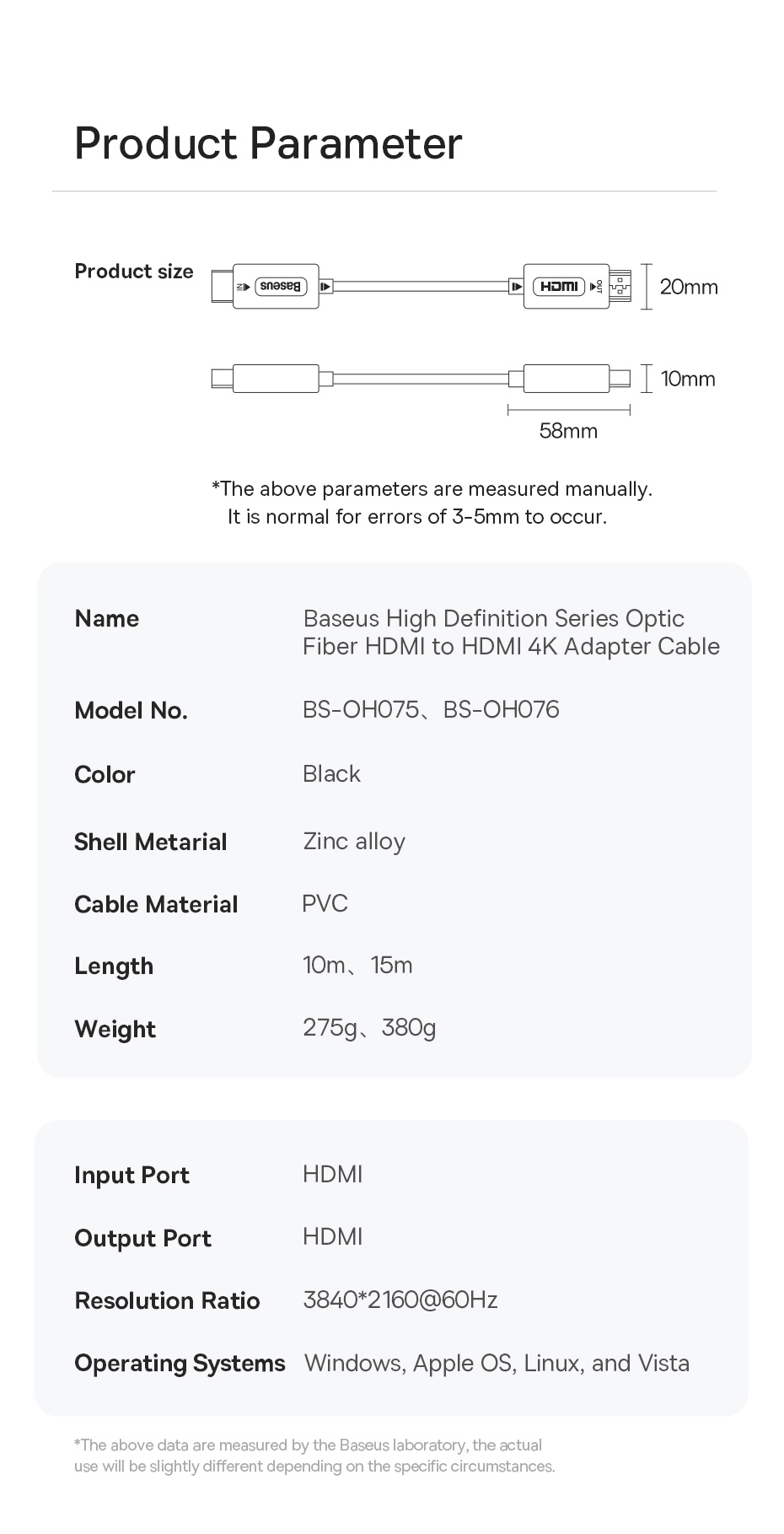 ✨ CÁP HDMI QUANG BASEUS 4K@60HZ - TRUYỀN TẢI TÍN HIỆU HOÀN HẢO, KHÔNG GIỚI HẠN KHOẢNG CÁCH! ✨