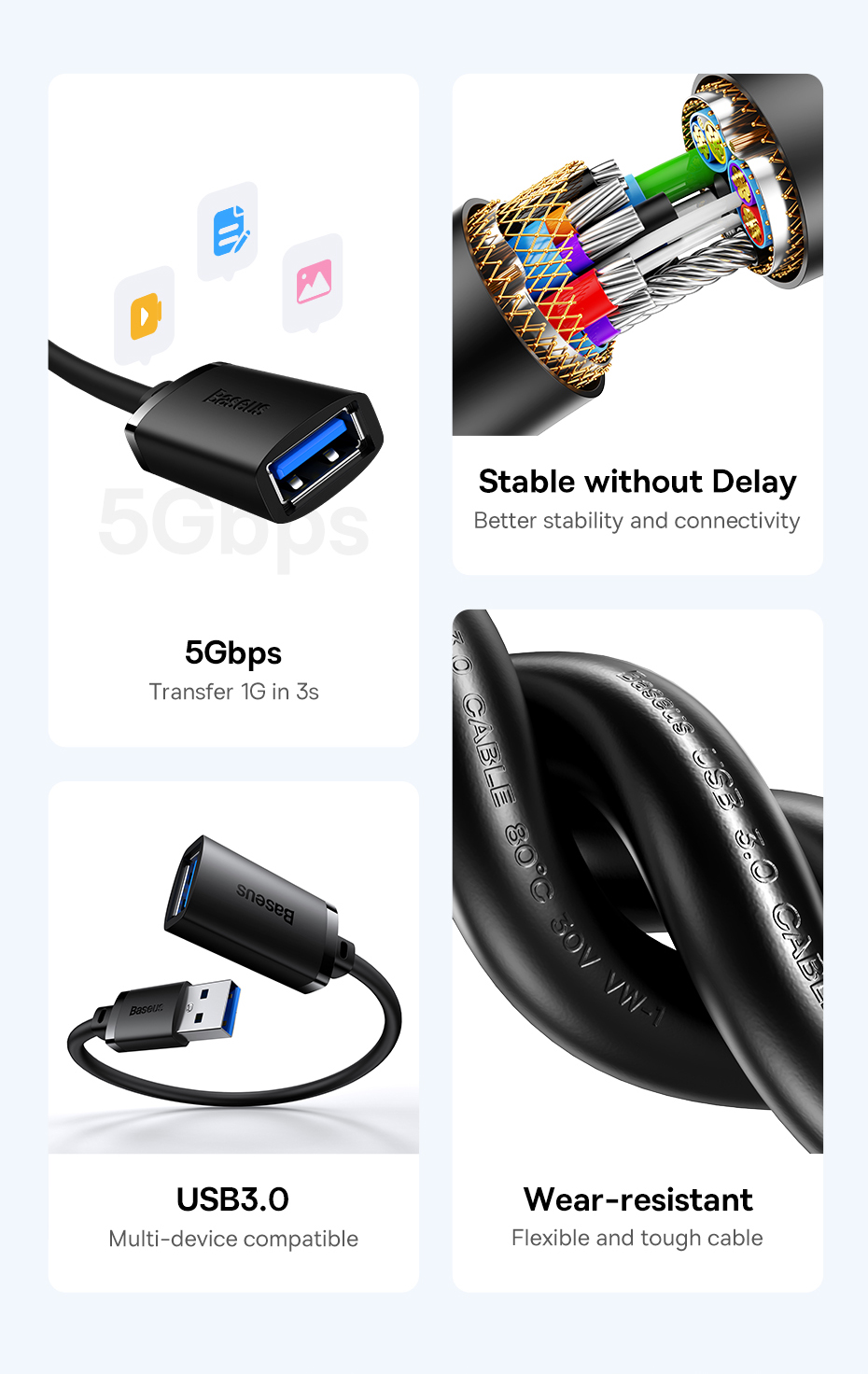 ✨ CÁP NỐI DÀI USB 3.0 BASEUS - KÉO DÀI KẾT NỐI, GIỮ TRỌN TỐC ĐỘ! ✨
