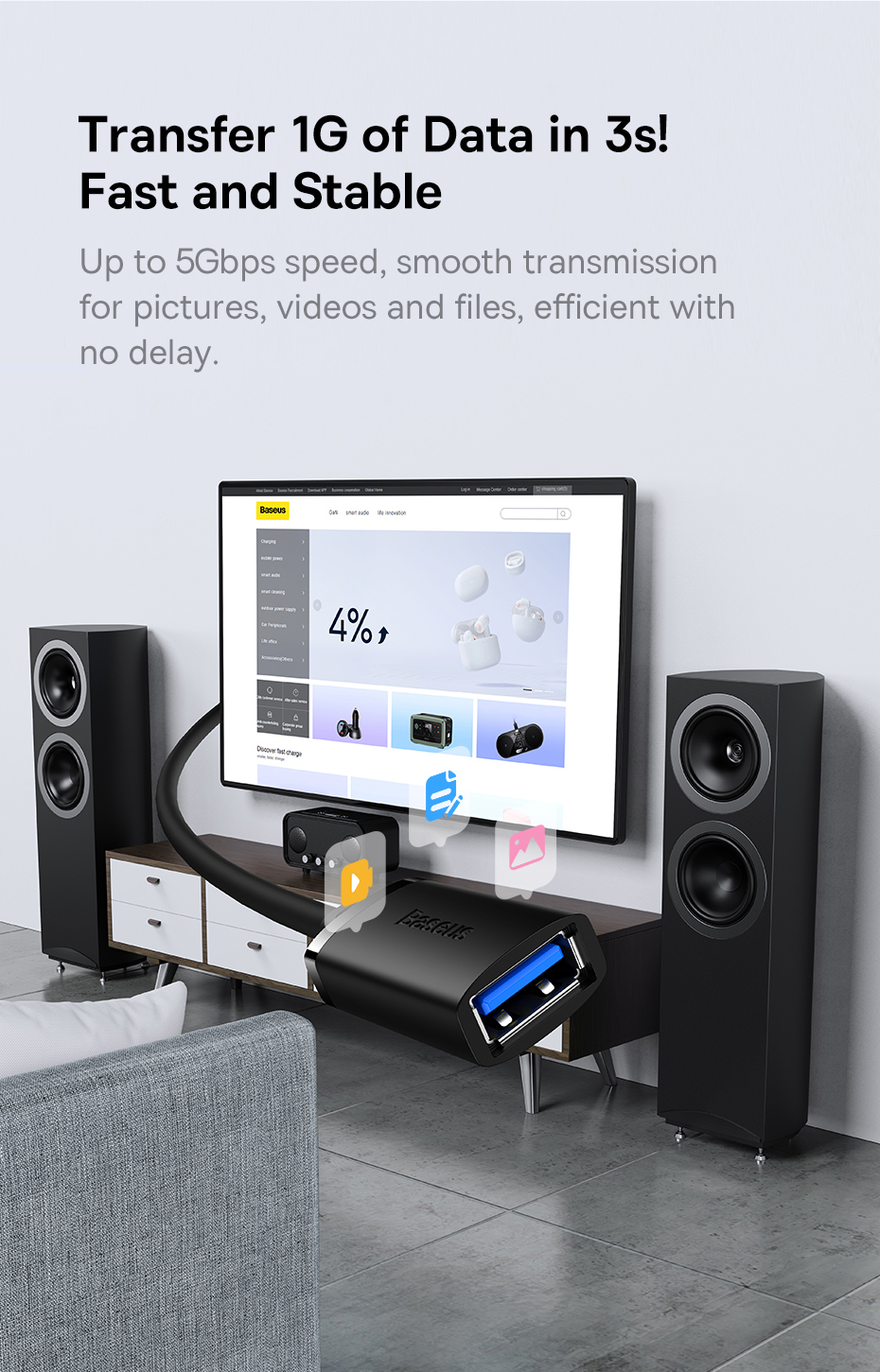 Bạn cảm thấy mệt mỏi vì phải cúi người xuống gầm bàn để cắm USB vào thùng máy PC? Hay cổng USB trên TV treo tường quá khó để tiếp cận? Cáp nối dài Baseus AirJoy USB 3.0 chính là giải pháp hoàn hảo, giúp bạn đưa cổng kết nối đến ngay trong tầm tay một cách tiện lợi mà vẫn đảm bảo tốc độ truyền dữ liệu nhanh chóng.