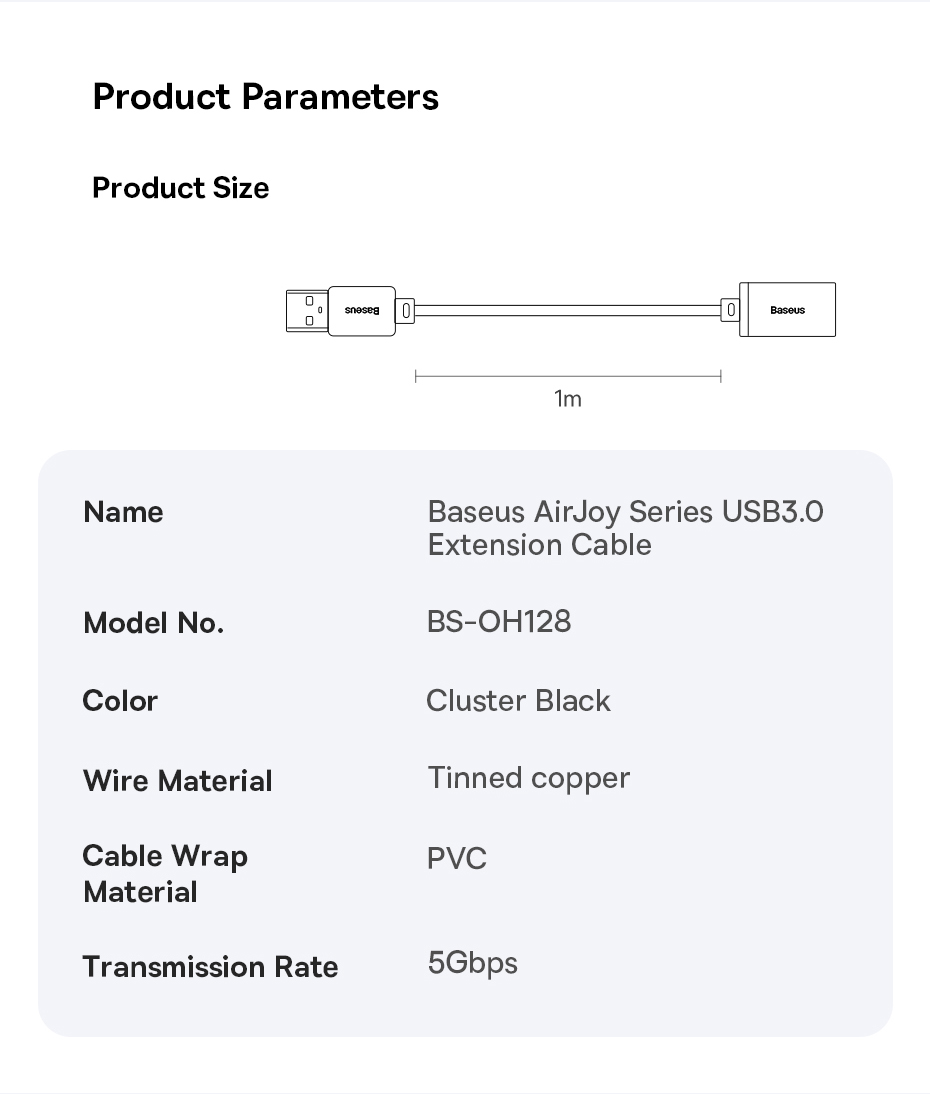 | Tên | Cáp Nối Dài USB Tiện Lợi Baseus AirJoy Series USB3.0 Extension Cable |