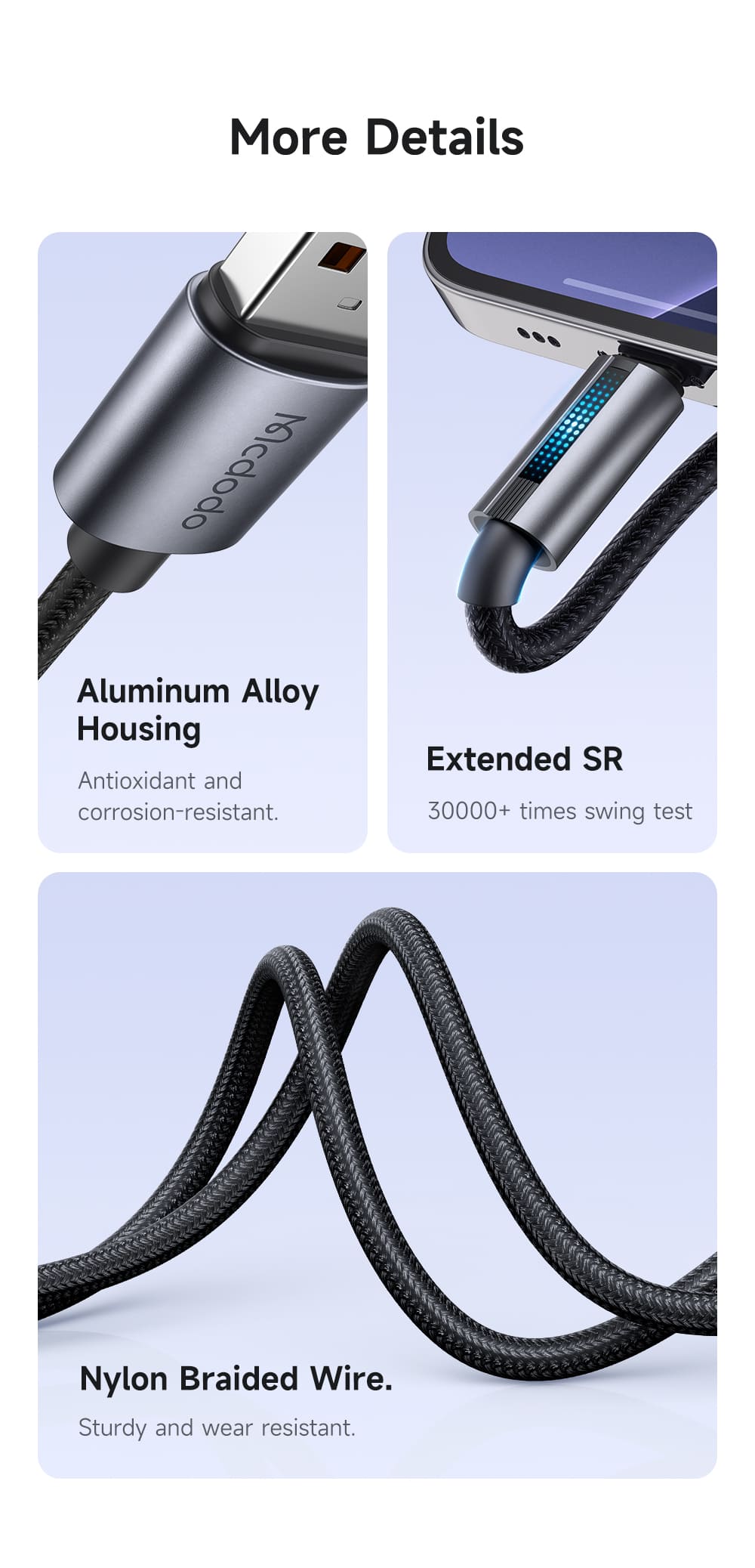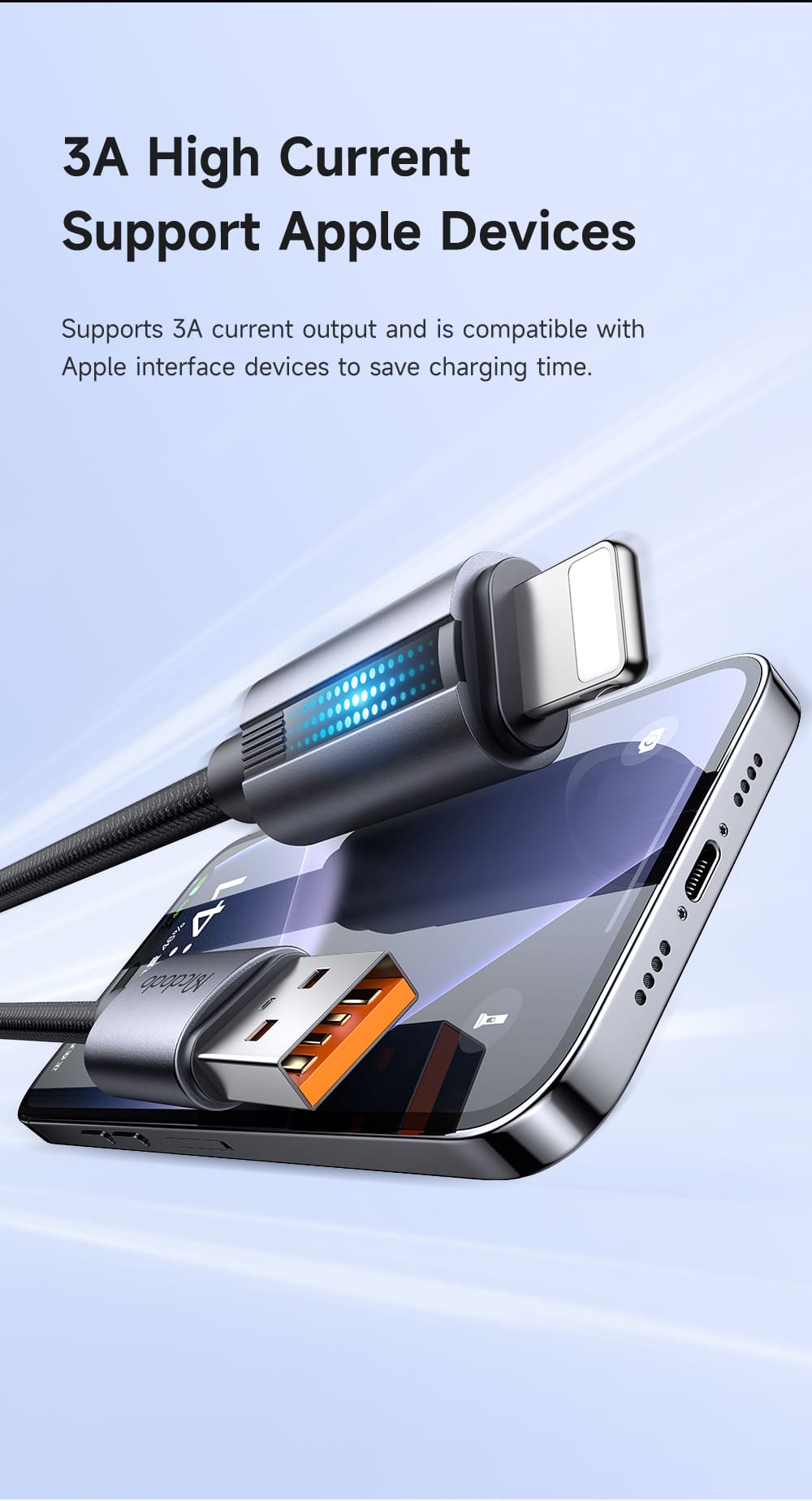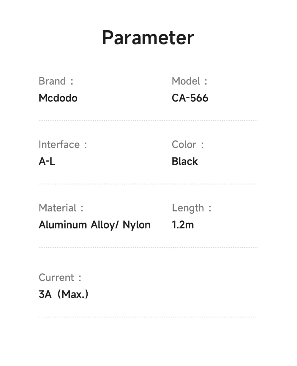 Cáp Sạc Mcdodo USB to Ln 3A | Có Đèn LED "Hơi Thở" Báo Sạc Độc Đáo, Dây Dù, Vỏ Hợp Kim