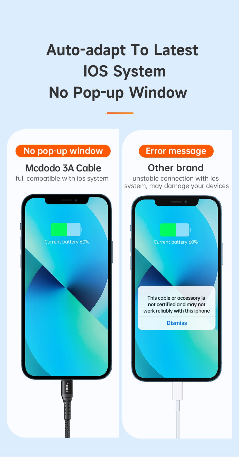 Nâng cấp trải nghiệm sạc của bạn với cáp Mcdodo 3A. Đây là sự lựa chọn hoàn hảo cho những ai tìm kiếm hiệu suất sạc nhanh vượt trội và một độ bền đáng tin cậy cho nhu cầu sử dụng hàng ngày, giúp bạn tiết kiệm thời gian và không còn lo lắng về việc cáp sạc hỏng vặt.