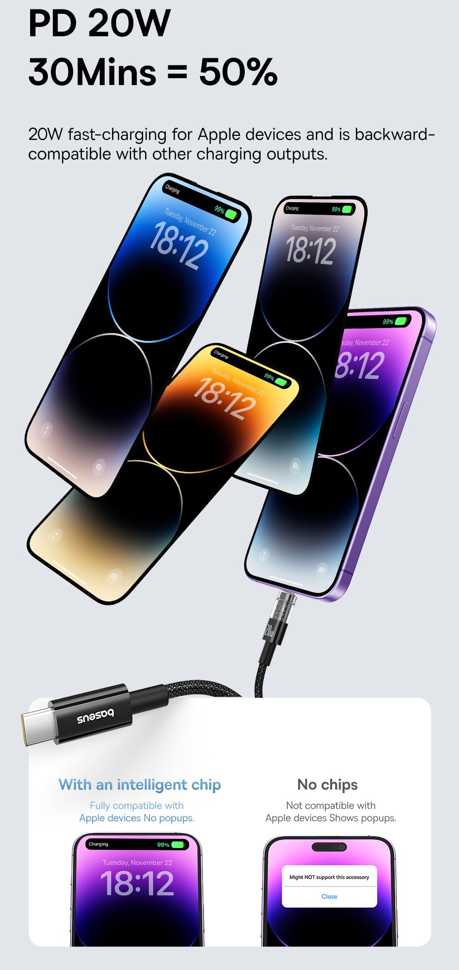 Trải nghiệm sự kết hợp hoàn hảo giữa thiết kế tinh xảo và tốc độ sạc mạnh mẽ. Cáp sạc Baseus Gem 20W không chỉ là một công cụ cung cấp năng lượng hiệu quả, mà còn là một phụ kiện công nghệ sang trọng với đầu cắm nhỏ gọn như một viên ngọc quý.