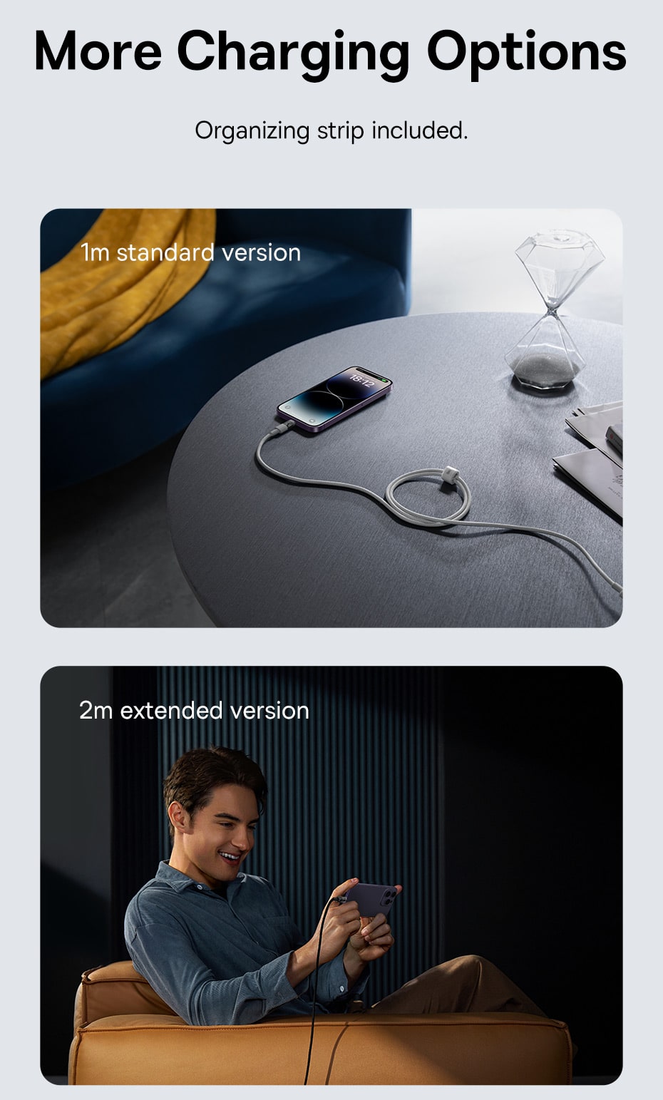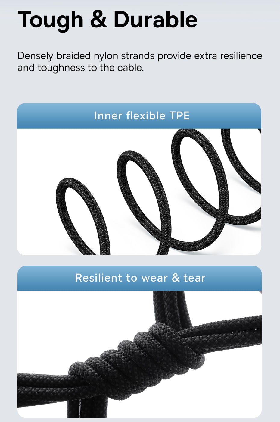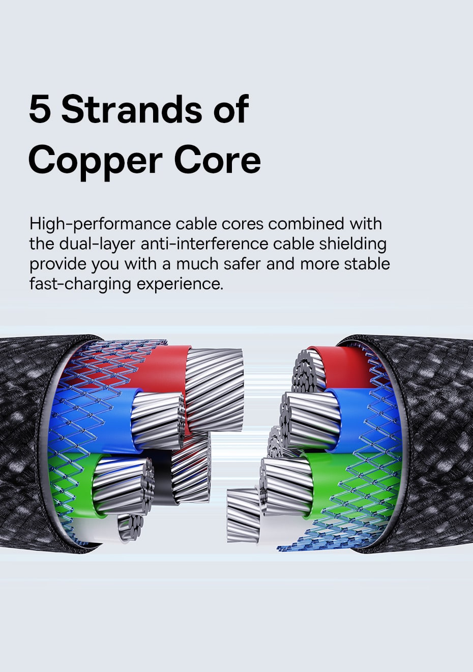 💪 Bền Bỉ & Ổn Định: Dù có thiết kế tinh tế, cáp vẫn đảm bảo độ bền với các khớp nối được gia cố và lõi đồng cao cấp. Cấu trúc chắc chắn giúp chịu được các tác động uốn cong hàng ngày và đảm bảo dòng điện luôn ổn định, an toàn.