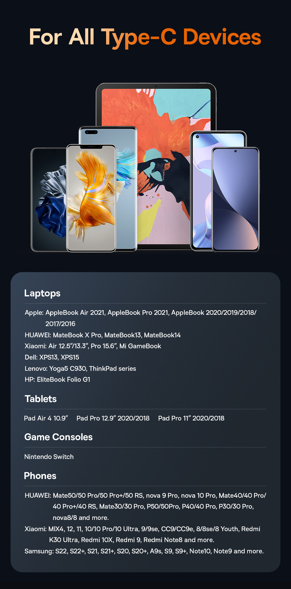 Tương Thích Rộng Rãi: Sử dụng cho mọi thiết bị có cổng sạc Type-C.