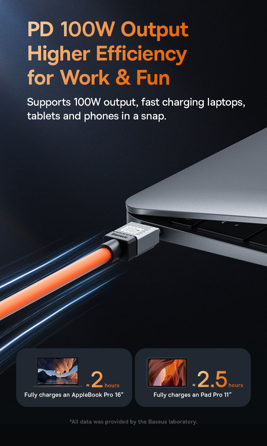 Công Suất Sạc Nhanh 100W: Lý tưởng để sạc cho laptop, máy tính bảng và các thiết bị Type-C công suất cao khác.