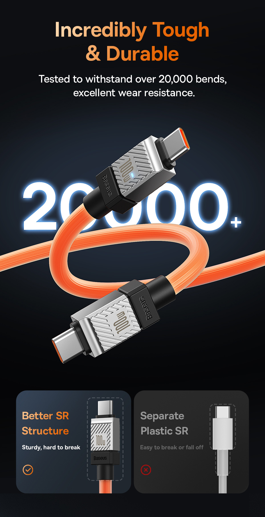 Thiết Kế Siêu Bền Bỉ: Chịu được hơn 20,000 lần uốn cong, chống đứt gãy.