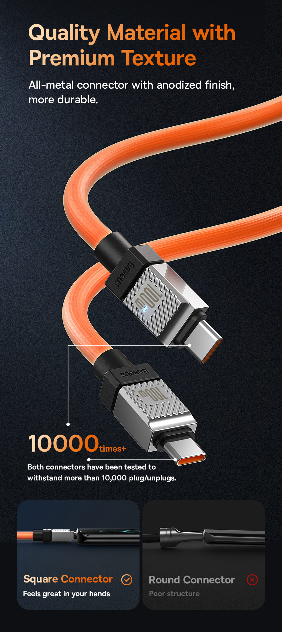 🛡️ SIÊU BỀN BỈ, CHẤT LIỆU CAO CẤP: Đầu cáp được đúc từ hợp kim kẽm nguyên khối và thân cáp dày 6mm được bao bọc hai lớp, cho khả năng chống đứt gãy, chống mài mòn và chịu được hơn 20,000 lần uốn cong. Một sợi cáp bạn có thể tin tưởng sử dụng trong nhiều năm.