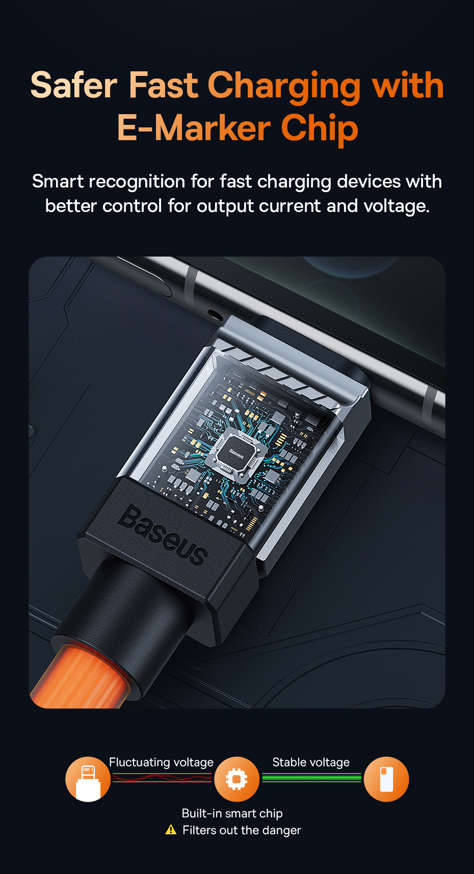 Chip E-Marker Thông Minh: Tự động nhận diện thiết bị, điều chỉnh dòng điện an toàn và ổn định.