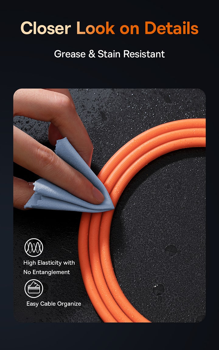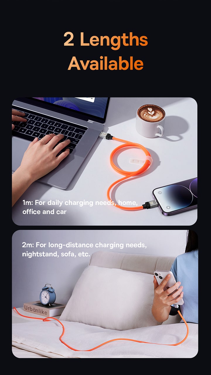 🍮 Chất Liệu Silicone Mềm Mịn, Chống Rối: Vỏ cáp được làm từ silicone cao cấp, thân thiện với da tay, cho cảm giác cầm nắm cực kỳ mềm mại và mượt mà. Đặc tính dẻo dai của silicone giúp cáp có khả năng chống rối vượt trội, dễ dàng cuộn lại và cất giữ.