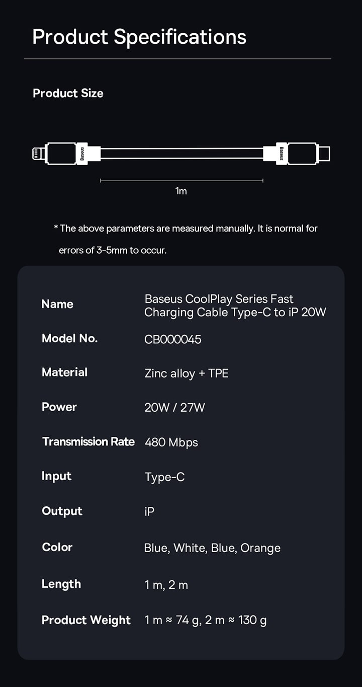 | Tên | Cáp Sạc Nhanh C to iP Baseus CoolPlay Series Fast Charging Cable Type-C to iP 20W |