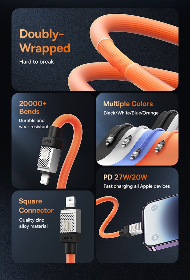 Trải nghiệm sự khác biệt với cáp sạc Baseus CoolPlay Series. Được làm từ chất liệu silicone cao cấp, sợi cáp mang lại cảm giác mềm mại, mượt mà khi sử dụng, kết hợp hoàn hảo với hiệu năng sạc nhanh 20W mạnh mẽ và một thiết kế đầy phong cách.