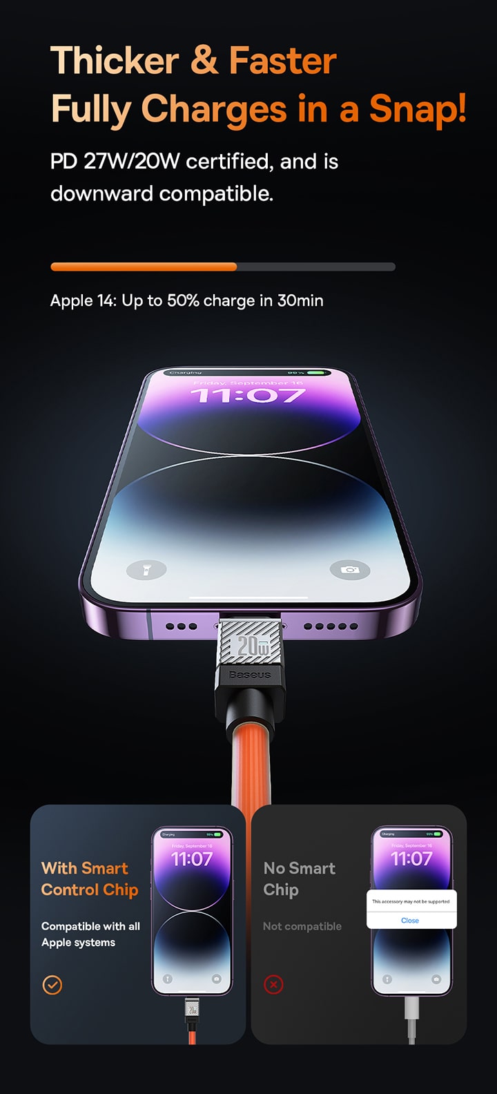 ⚡️ Sạc Nhanh PD 20W Tối Ưu: Cung cấp công suất sạc nhanh Power Delivery 20W, giúp nạp đầy 60% pin cho các dòng máy đời mới chỉ trong 30 phút. Tận hưởng tốc độ sạc vượt trội so với các loại cáp thông thường.