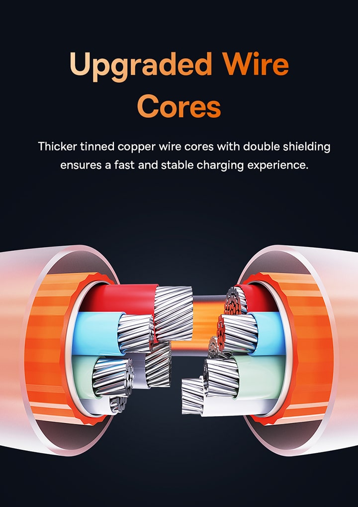 💪 Dẻo Dai Vượt Trội, Chống Gãy Gập: Dù mềm mại, sợi cáp vẫn được gia cố chắc chắn ở các khớp nối và có lõi đồng dày, đảm bảo độ bền cao, chịu được các tác động uốn cong, gập xoắn trong quá trình sử dụng hàng ngày.