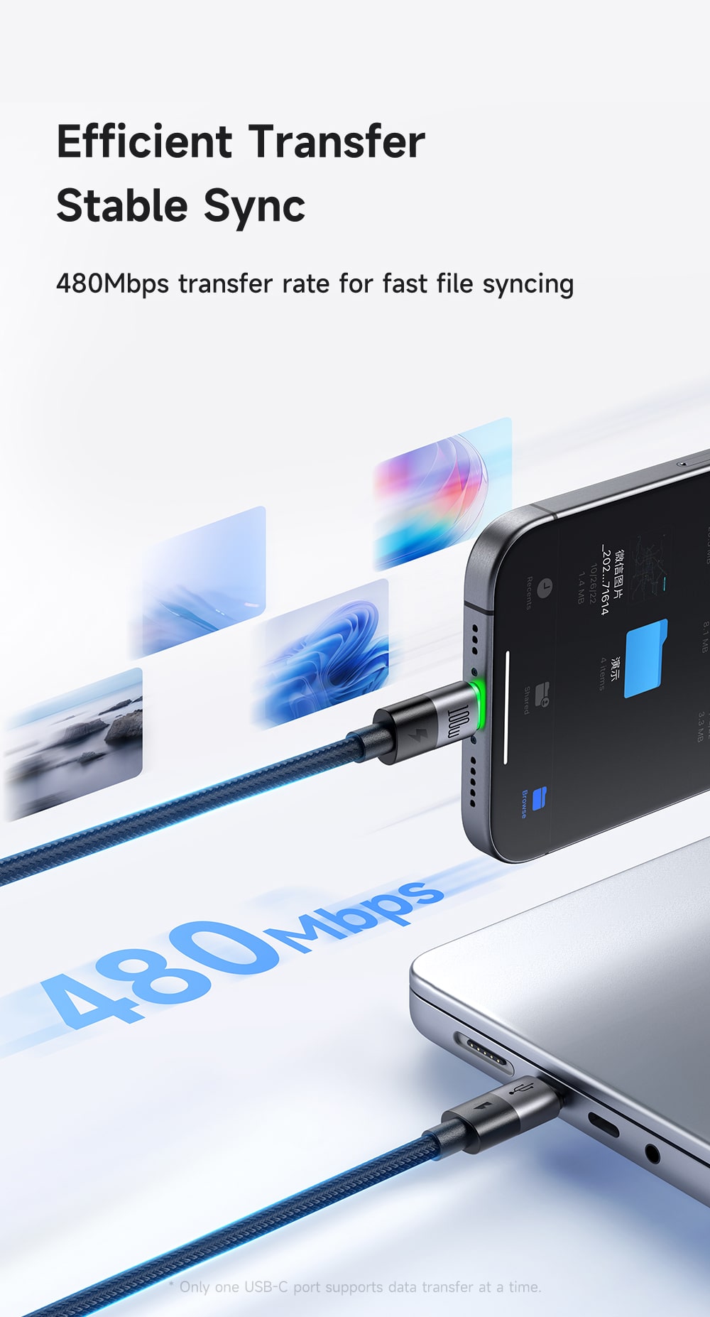 🔄 HỖ TRỢ TRUYỀN DỮ LIỆU: Không chỉ để sạc, sợi cáp này còn hỗ trợ truyền tải dữ liệu giữa điện thoại và laptop với tốc độ 480Mbps, giúp bạn đồng bộ hóa công việc và giải trí một cách nhanh chóng.