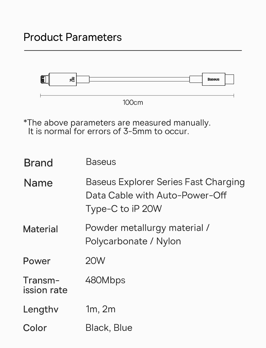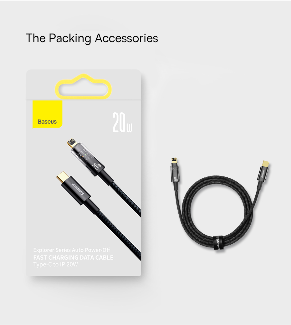 | Tên | Baseus Explorer Series Auto Power-Off Fast Charging Data Cable Type-C to IP 20W |