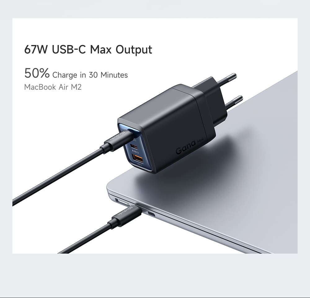 💻 Công Suất 67W - Sạc Nhanh Cho Laptop: Với công suất tối đa 67W qua cổng Type-C, củ sạc có thể nạp năng lượng nhanh chóng cho các dòng laptop hỗ trợ sạc PD, sạc 50% pin cho các dòng laptop siêu mỏng chỉ trong 30 phút.