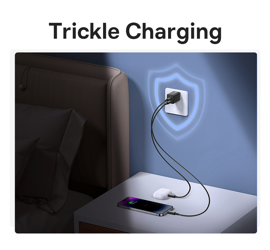 Công suất 40W: Tự động phân chia công suất thông minh (ví dụ: 20W+20W) khi sạc 2 thiết bị.