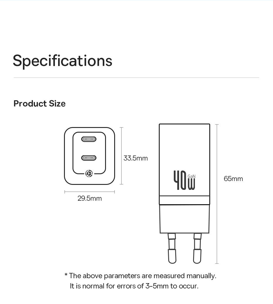 | Tên | Cốc Sạc Nhanh Nhỏ Gọn OS-Baseus GaN5 Pro Fast Charger C+C 40W EU (Chân cắm tròn) |