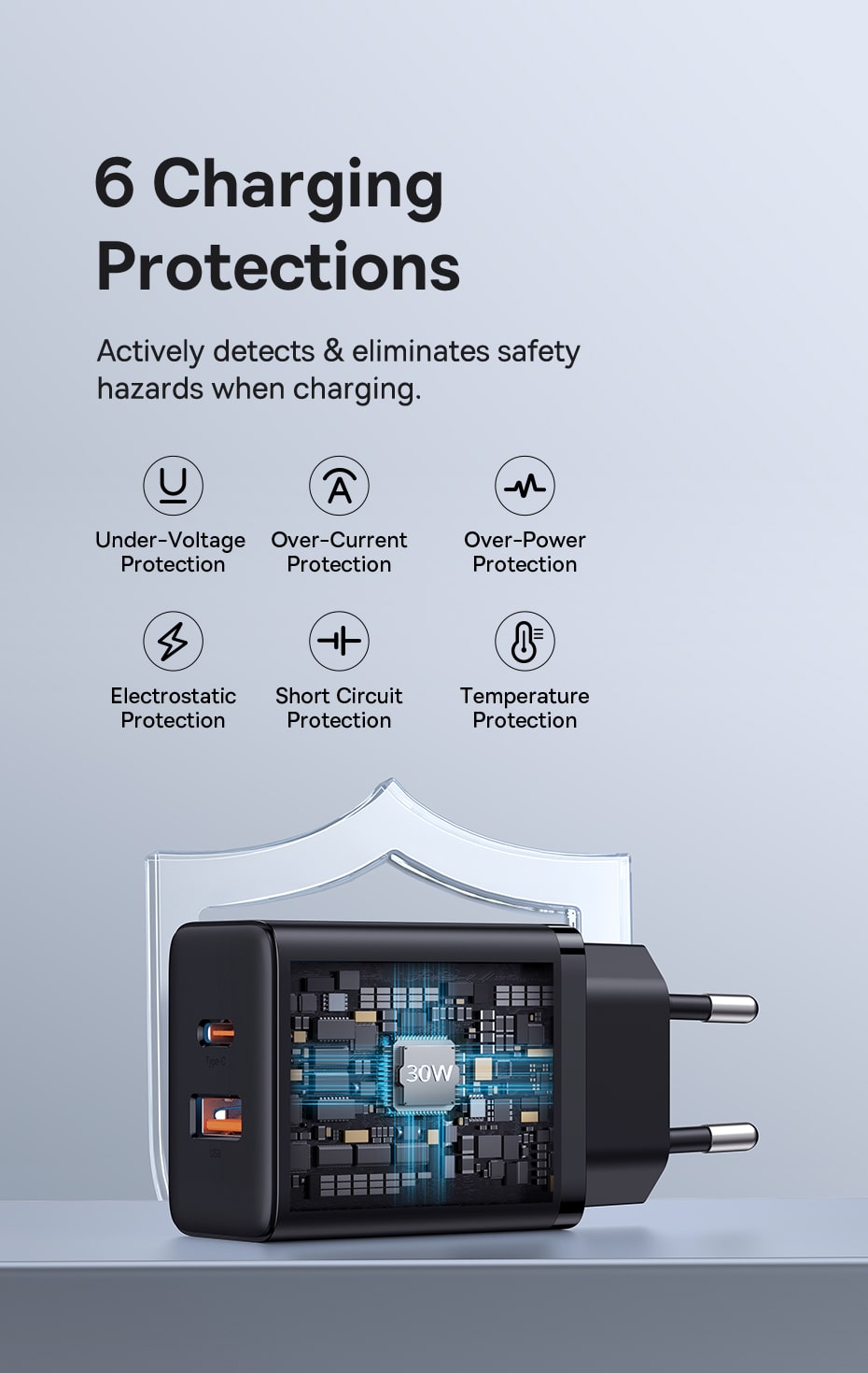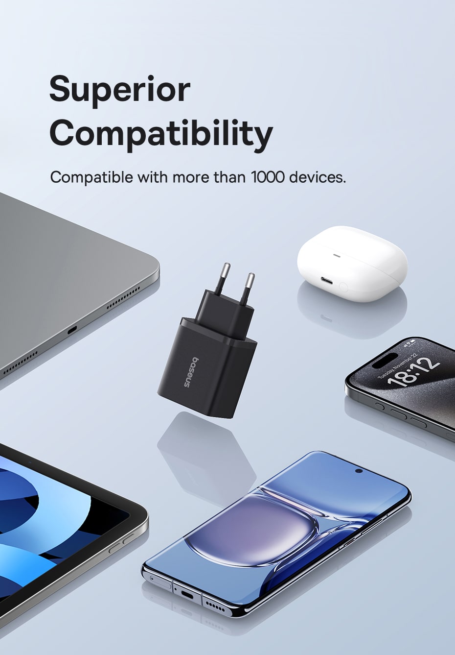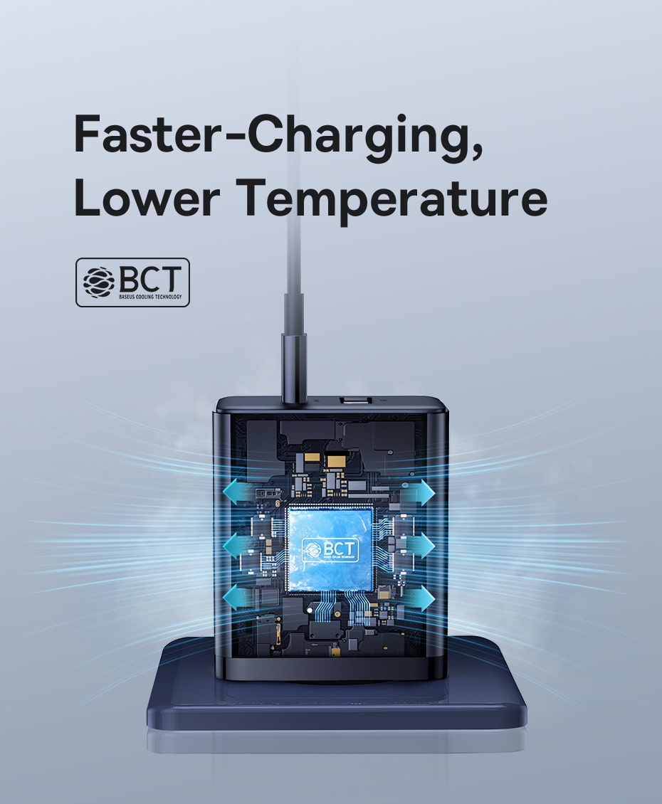 🧊 Sạc Mát & An Toàn: Tích hợp công nghệ kiểm soát nhiệt độ BCT độc quyền của Baseus, giúp củ sạc tản nhiệt hiệu quả và duy trì nhiệt độ thấp ngay cả khi đang sạc nhanh, bảo vệ an toàn cho pin thiết bị.