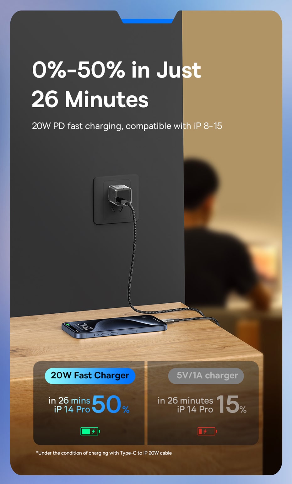 ⚡️ Sạc Nhanh PD 20W Tối Ưu: Cung cấp công suất sạc nhanh Power Delivery 20W, giúp nạp đầy 60% pin cho các dòng điện thoại mới chỉ trong 30 phút. Nhanh chóng quay trở lại công việc và giải trí mà không phải chờ đợi lâu.
