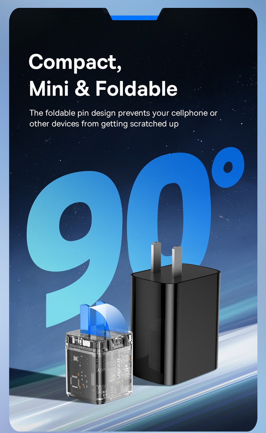 Trải nghiệm sự tiện lợi đỉnh cao với củ sạc nhanh Baseus GaN5 20W. Không chỉ sở hữu sức mạnh từ công nghệ GaN thế hệ thứ 5, củ sạc còn có thiết kế chân cắm gập gọn độc đáo, biến nó thành người bạn đồng hành hoàn hảo cho mọi chuyến đi.