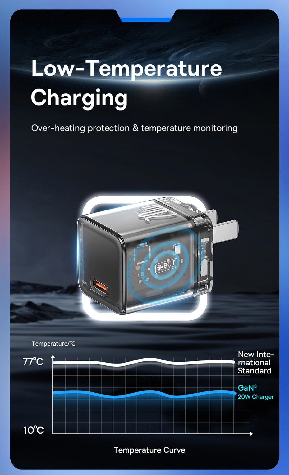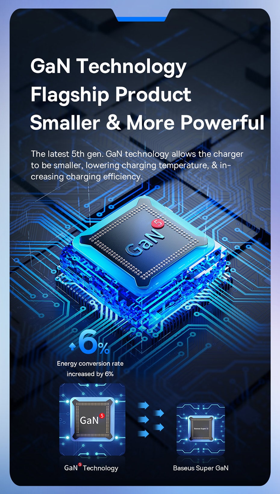 🔬 Công Nghệ GaN5 - Nhỏ Hơn, Mát Hơn, Nhanh Hơn: Công nghệ GaN thế hệ thứ 5 cho phép thu nhỏ kích thước củ sạc một cách đáng kể, trong khi vẫn đảm bảo hiệu suất chuyển đổi năng lượng cao, hoạt động mát mẻ và ổn định hơn.