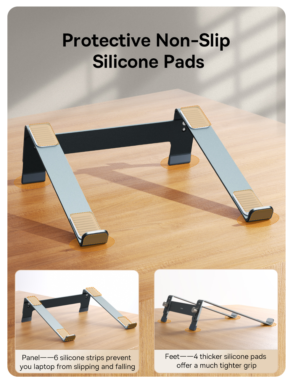 Đệm Silicon Chống Trượt: Giữ laptop cố định và chống trầy xước.