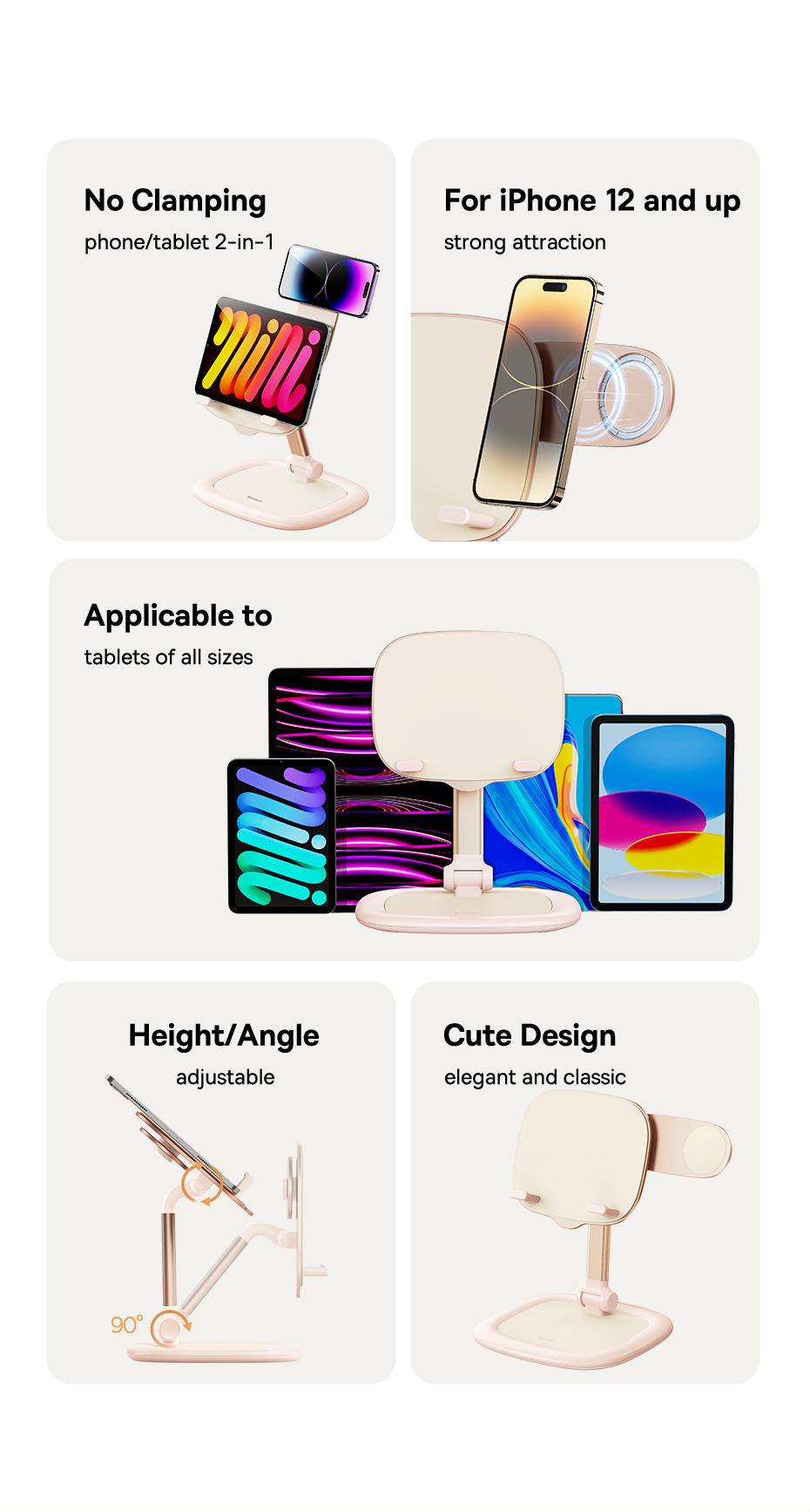 ○ Thiết kế 2 trong 1: Giá đỡ từ tính cho điện thoại và ngàm kẹp cho máy tính bảng.