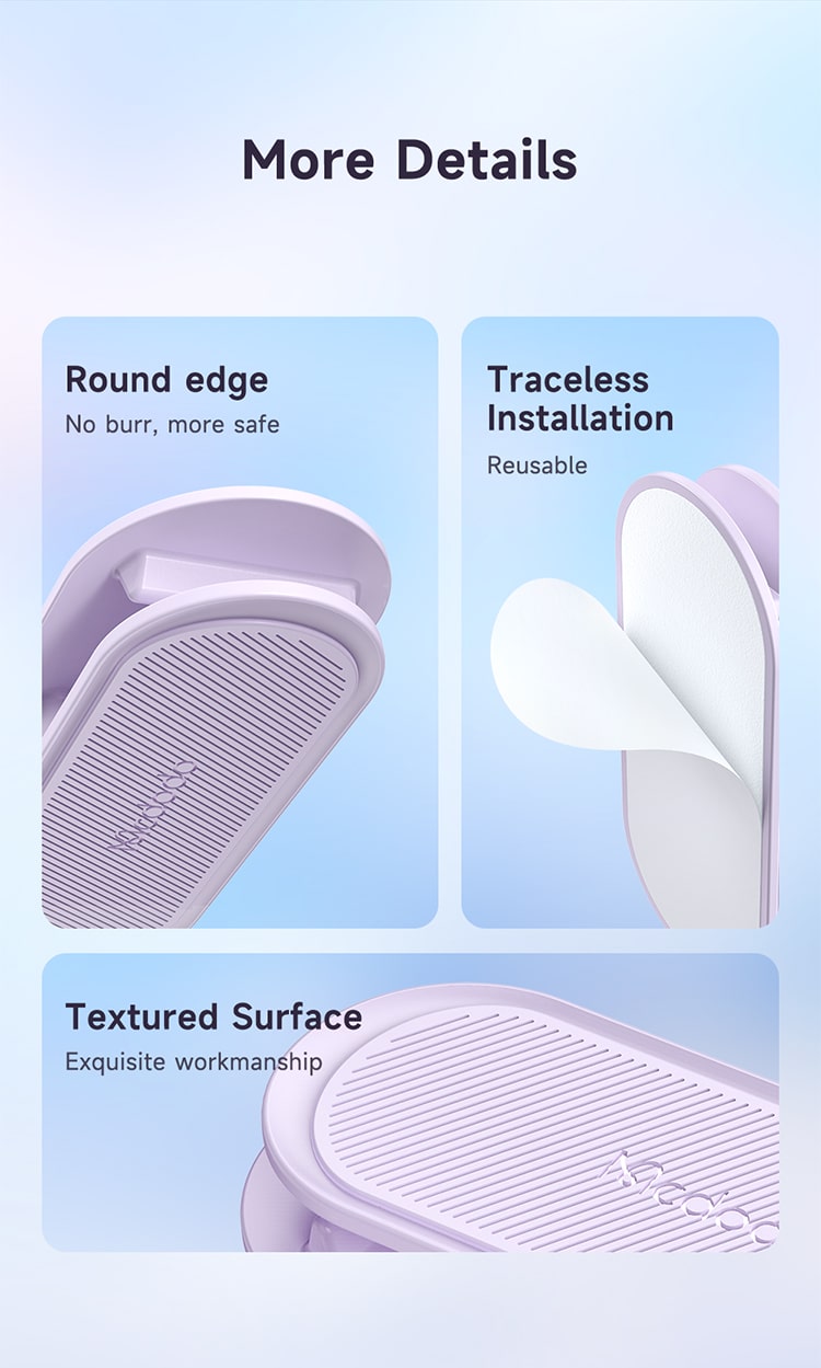 👍 Lắp Đặt Đơn Giản, Bám Dính Chắc Chắn: Không cần khoan tường hay đóng đinh! Mặt sau của kẹp được trang bị sẵn lớp keo 3M siêu dính, có thể dán chắc chắn trên hầu hết các bề mặt phẳng như gỗ, kính, kim loại, nhựa...