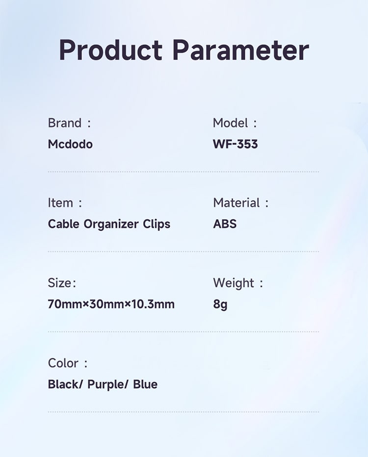 | Tên | Kẹp Dây Cáp Mcdodo Cable Organizer |