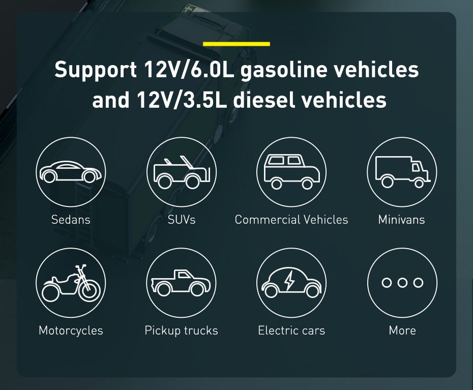 ○ Tương thích: Xe động cơ xăng (dưới 6.0L) và xe động cơ dầu (dưới 3.5L).