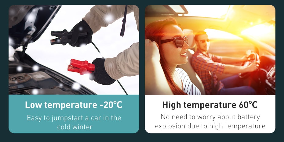 ⚡ SỨC MẠNH 1000A - KÍCH NỔ TỨC THÌ: Đừng để kích thước nhỏ gọn đánh lừa bạn. Dòng điện đỉnh 1000A đủ mạnh để khởi động ngay lập tức hầu hết các dòng xe gia đình, từ xe động cơ xăng (dưới 6.0L) đến xe động cơ dầu (dưới 3.5L). Hoạt động hiệu quả ngay cả trong thời tiết lạnh giá đến -20°C.