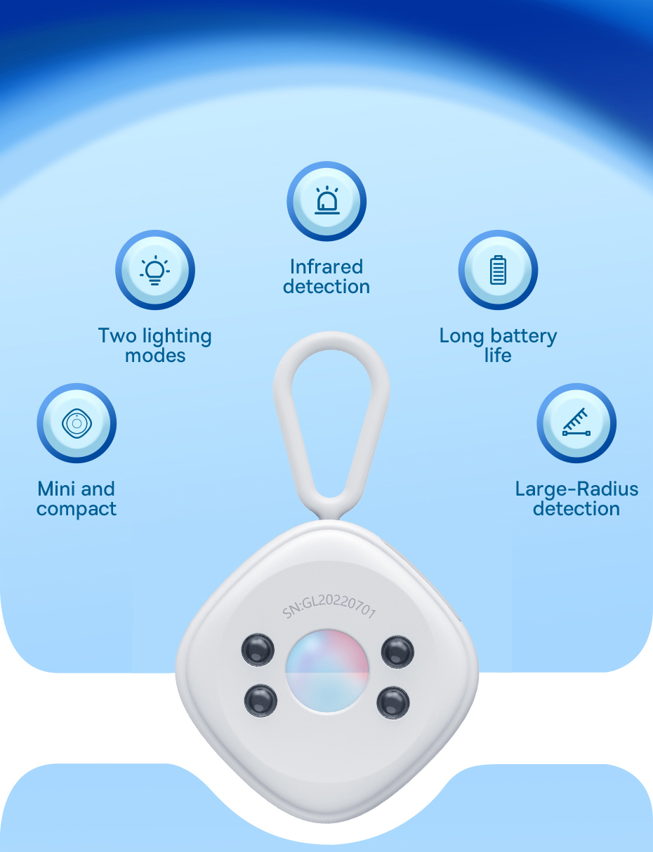 Baseus Heyo Camera Detector là thiết bị dò hồng ngoại thông minh được thiết kế để phát hiện các loại camera giấu kín, đảm bảo sự riêng tư và an toàn cho người dùng trong các không gian như khách sạn, phòng thay đồ, phòng họp, căn hộ thuê hoặc khu vực nhạy cảm. Với thiết kế nhỏ gọn, hiện đại và dễ sử dụng, sản phẩm mang lại sự an tâm tối đa trong cuộc sống hàng ngày.