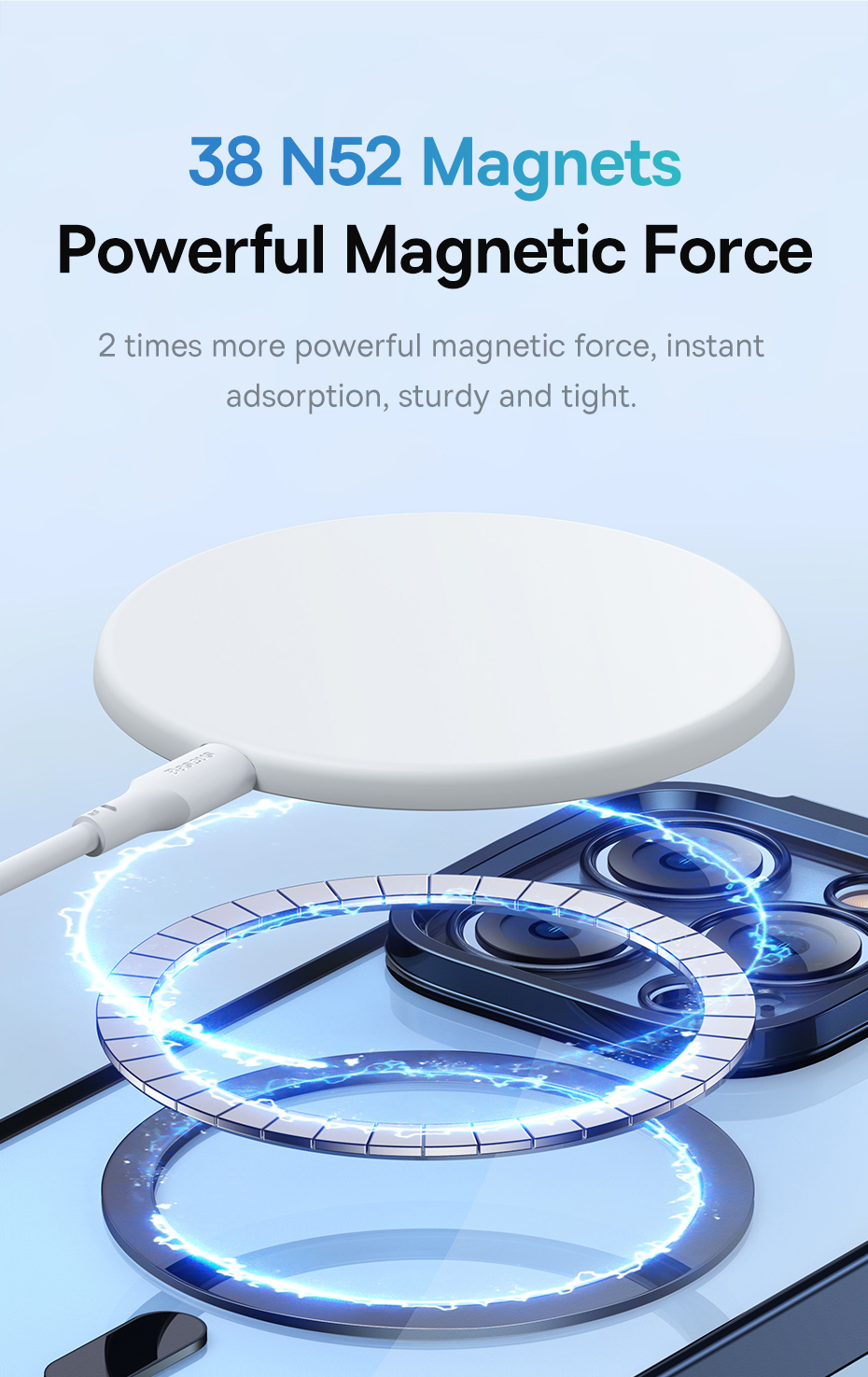 Tích hợp 38 nam châm N52: Cho lực hít từ tính siêu mạnh, giúp sạc ổn định.