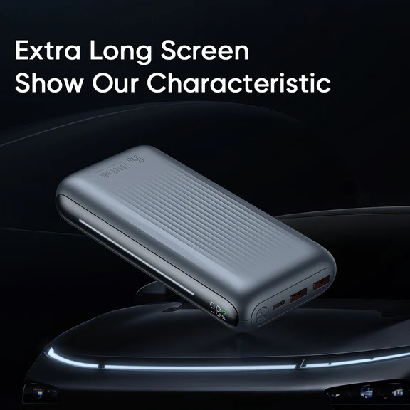 ✨ THIẾT KẾ VALI ĐỘC ĐÁO & MÀN HÌNH LED: Lấy cảm hứng từ những chiếc vali du lịch, bề mặt vân sọc không chỉ tạo nên vẻ ngoài sang trọng, khác biệt mà còn giúp cầm nắm chắc chắn. Màn hình LED kỹ thuật số dài bên cạnh hiển thị chính xác phần trăm pin còn lại.