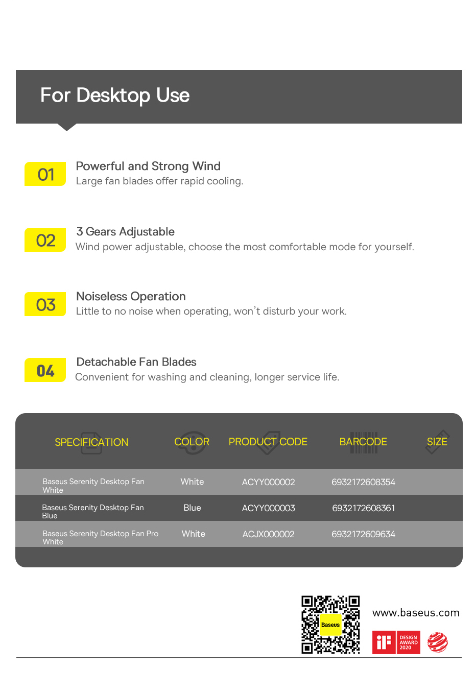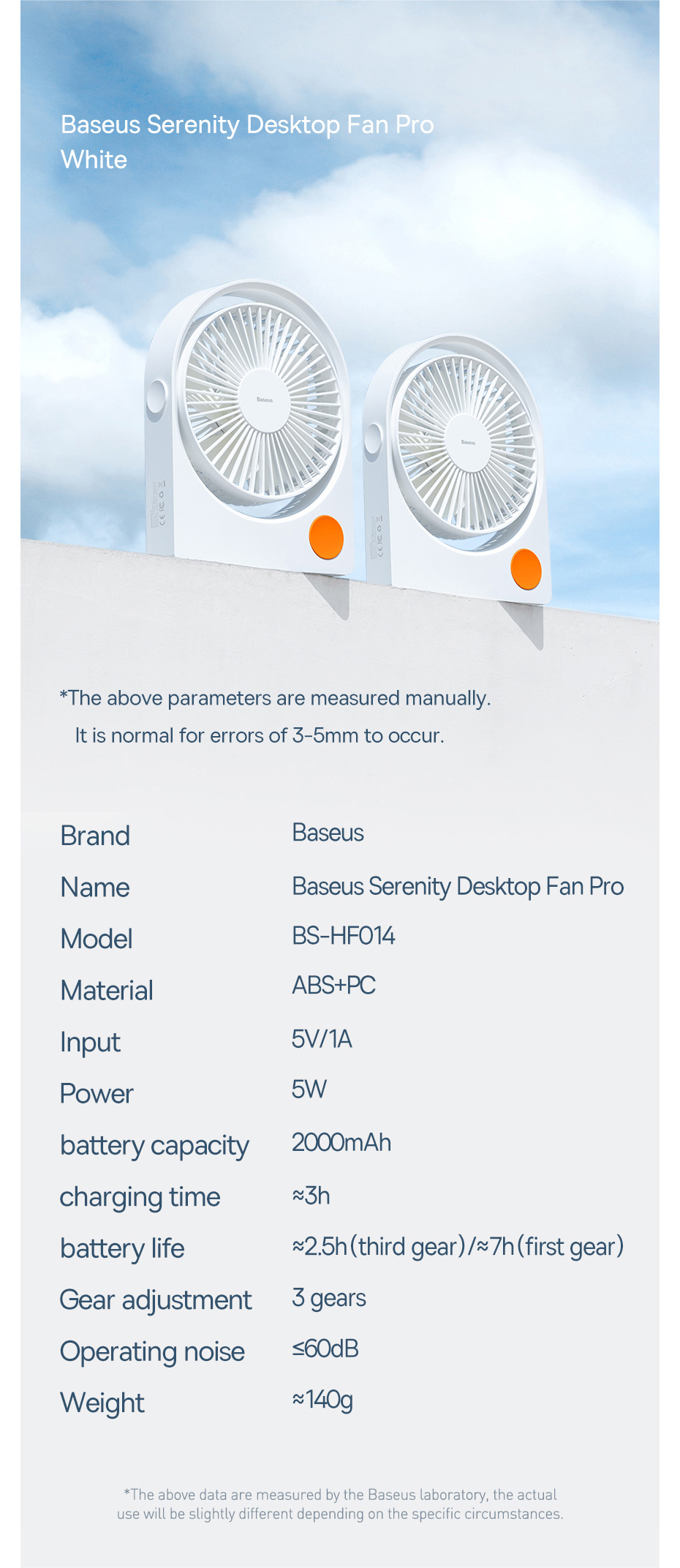 | Tên | Baseus Serenity Desktop Fan 2000 mAh |