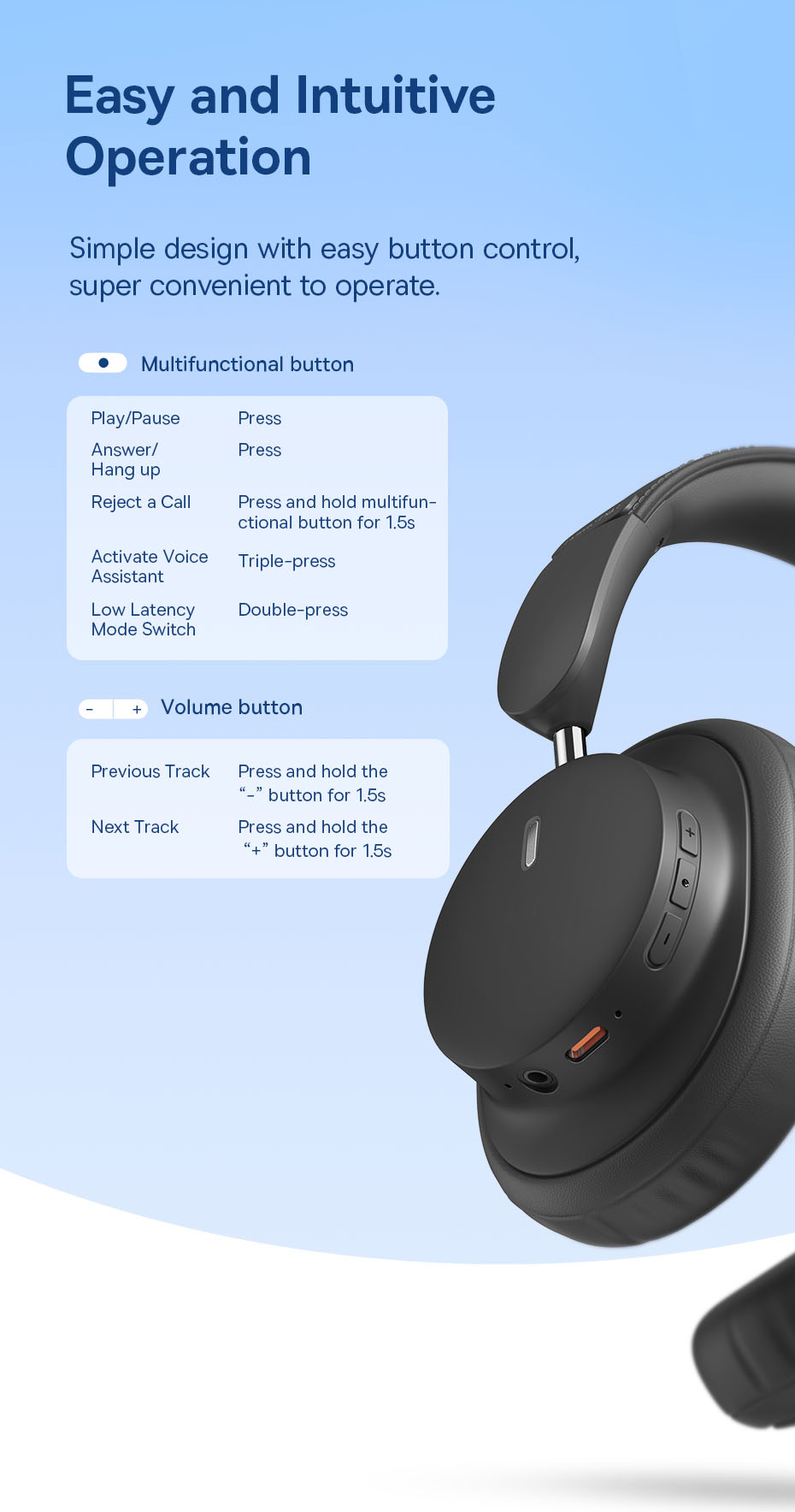 Tận hưởng âm thanh sống động và tự do không giới hạn với Tai nghe chụp tai Baseus Bowie D03. Với thời lượng pin siêu dài lên đến 30 giờ, kết nối Bluetooth 5.3 ổn định và chế độ gaming độ trễ thấp, D03 là người bạn đồng hành lý tưởng cho cả ngày dài học tập, làm việc và giải trí.