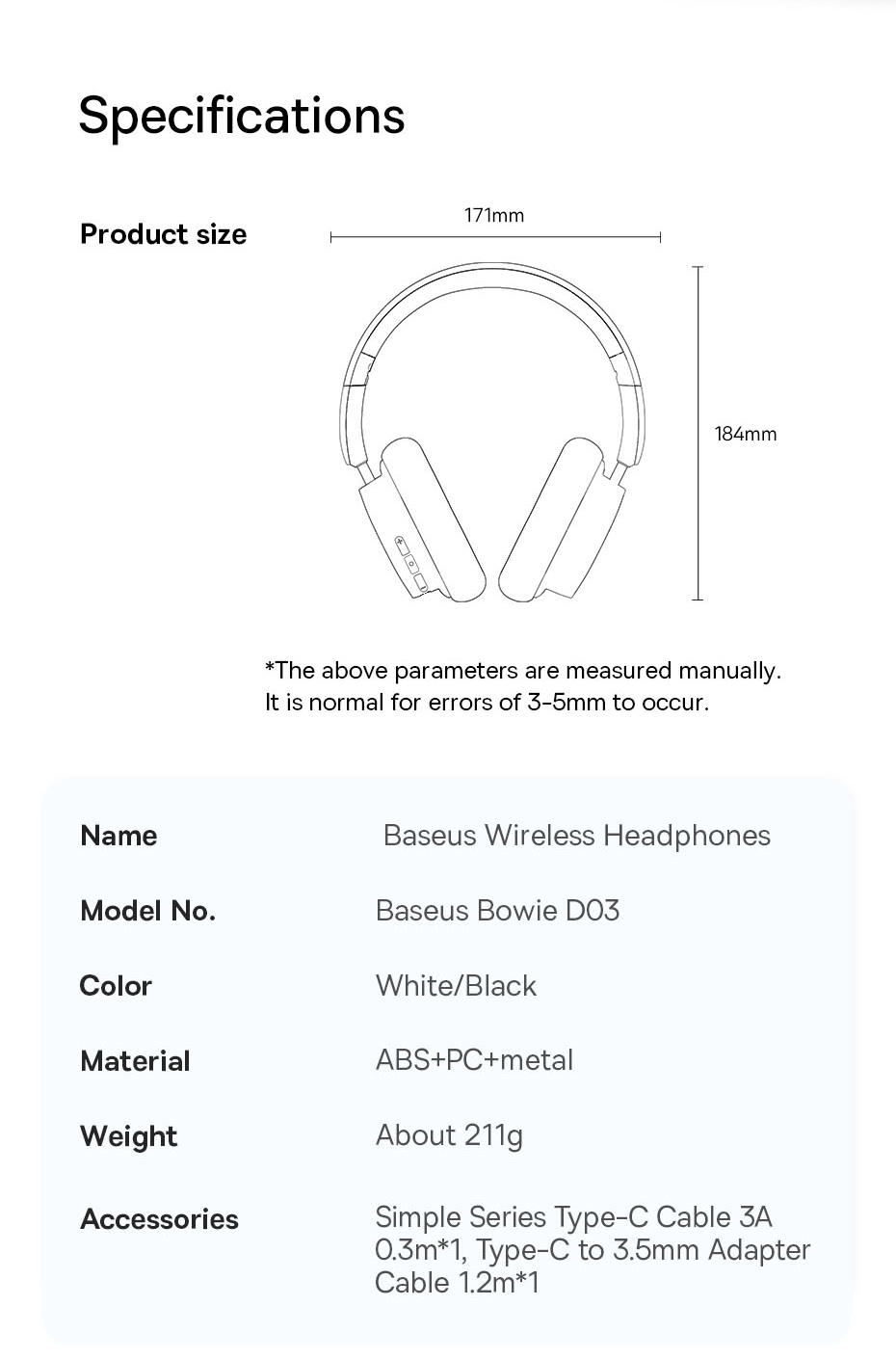 | Tên | Tai Nghe Chụp Tai Chống Ồn Baseus Bowie D03 Wireless Headphones |