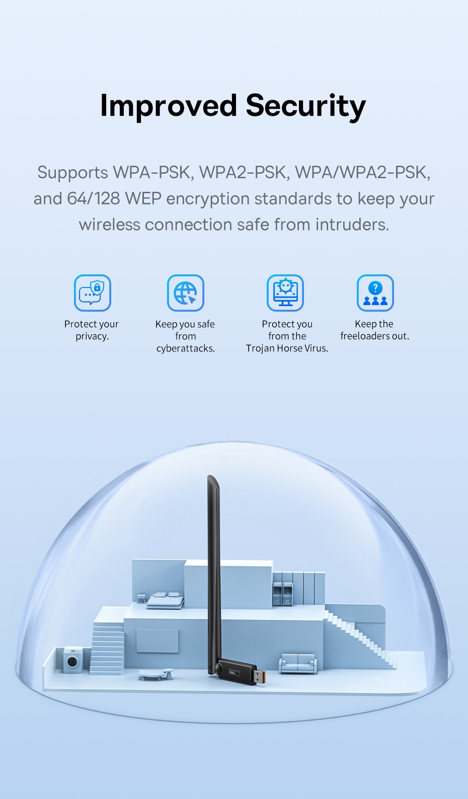 | Tiên chuẩn mã hóa | WPA-PSK, WPA2-PSK, WPA/WPA2-OSJ, 64/128WEP |