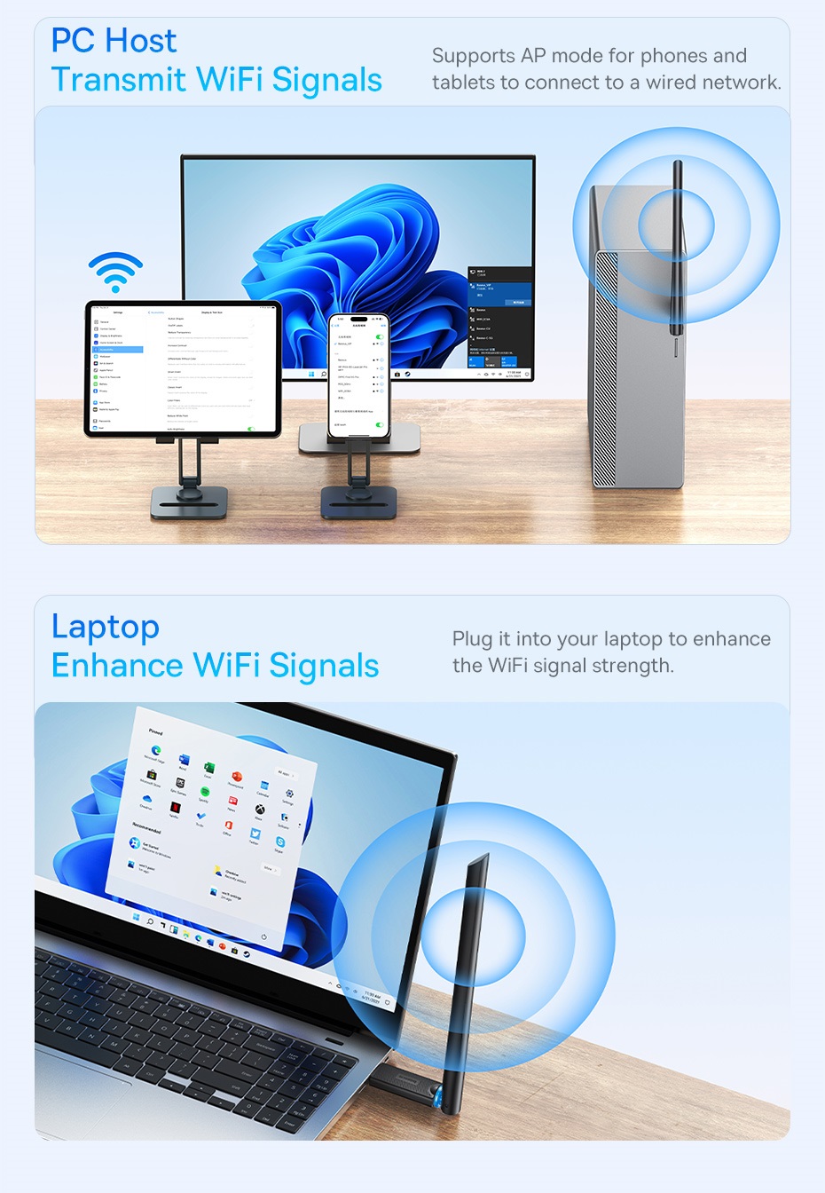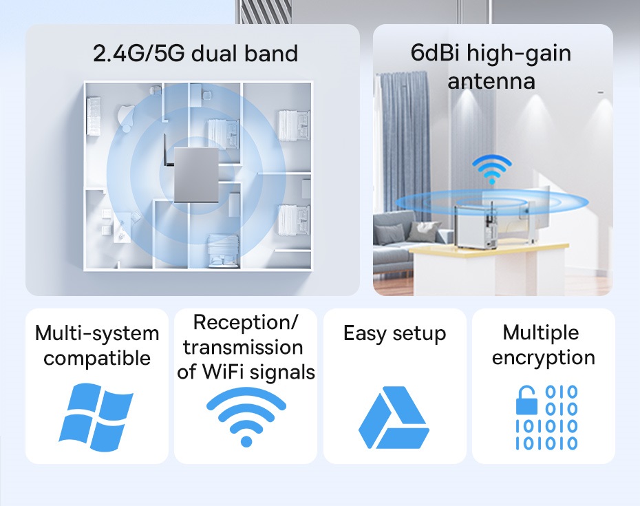 📶 TĂNG CƯỜNG KHẢ NĂNG THU SÓNG: Các phiên bản có anten rời với độ lợi cao (lên đến 6dBi) giúp bắt sóng Wifi từ khoảng cách xa hơn và xuyên tường tốt hơn, giải quyết triệt để vấn đề tín hiệu yếu, chập chờn.